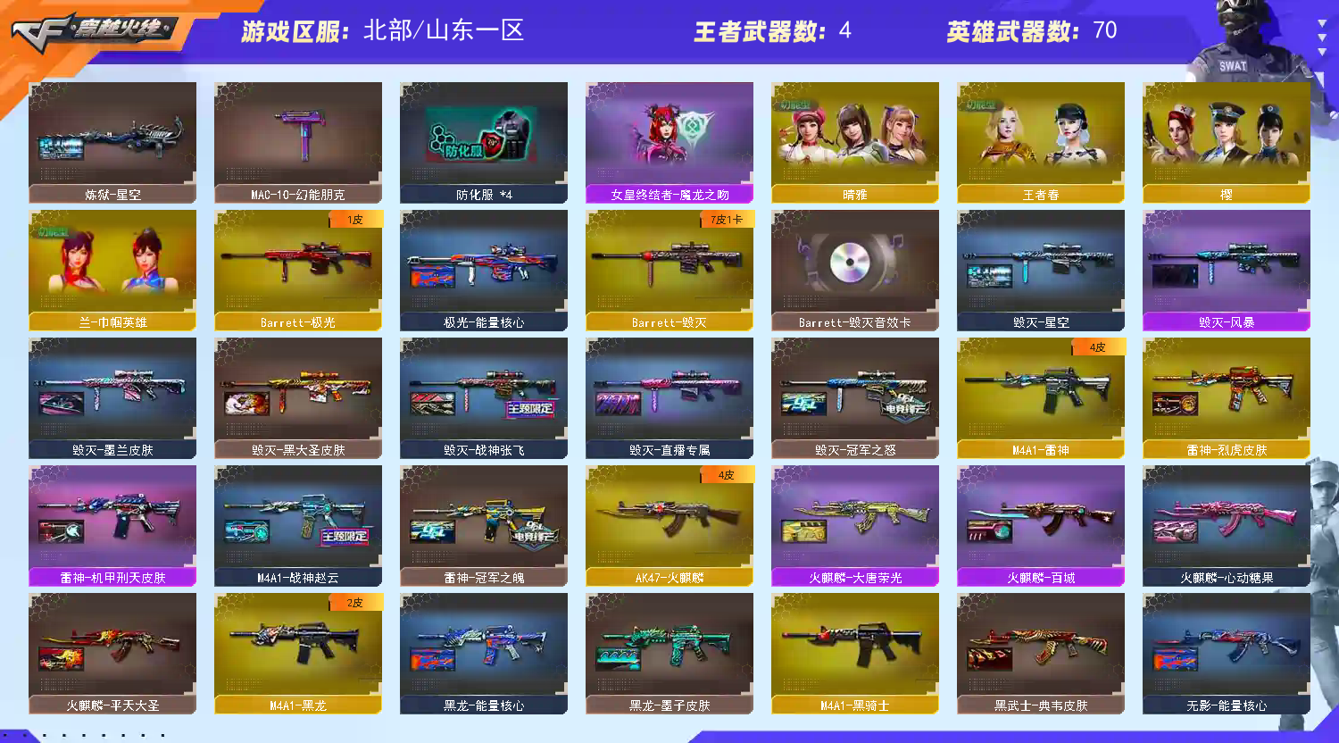 首页 > 租号大厅 > 穿越火线 > 网通区/山东一区 > 生化爆破挑战全能|五传说,两传幻,幻神、星神、裁决、毁灭全部三件套,幻影copusp柯尔特五烈四盘