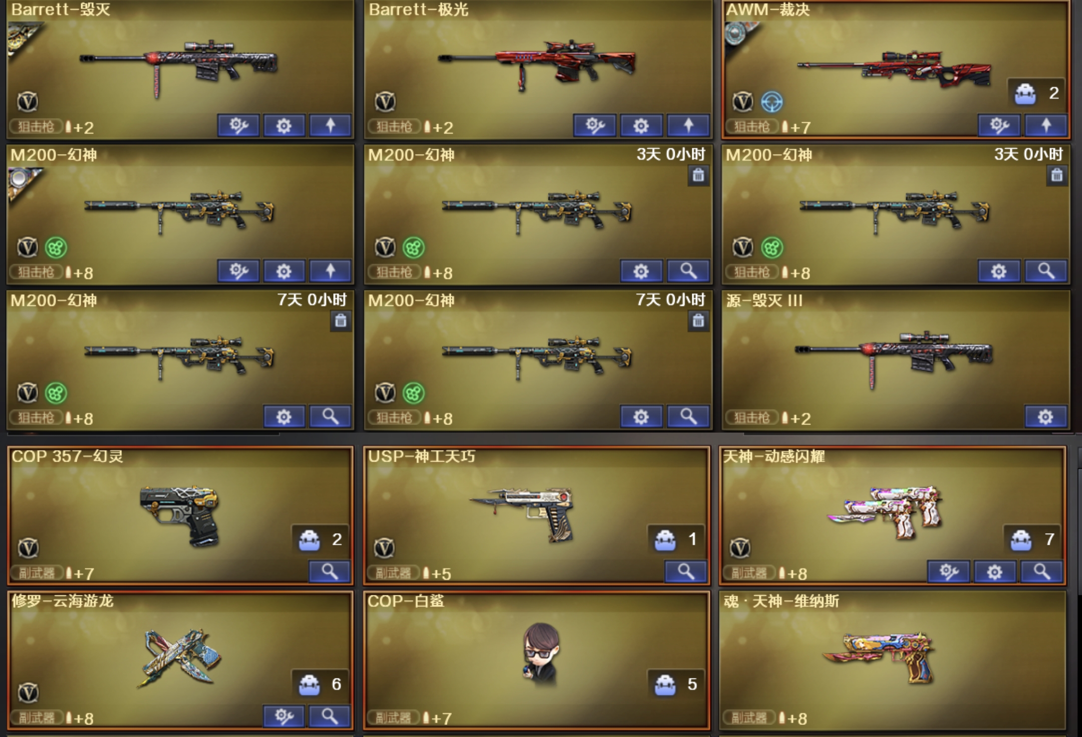 南部68v 四防隼 6烈4盘蝴蝶清道夫炼狱 猎手皮肤多;炽芒蝶刃,隼,RPK-盘龙,QBZ03-金色蔷薇,M200-幻神,
