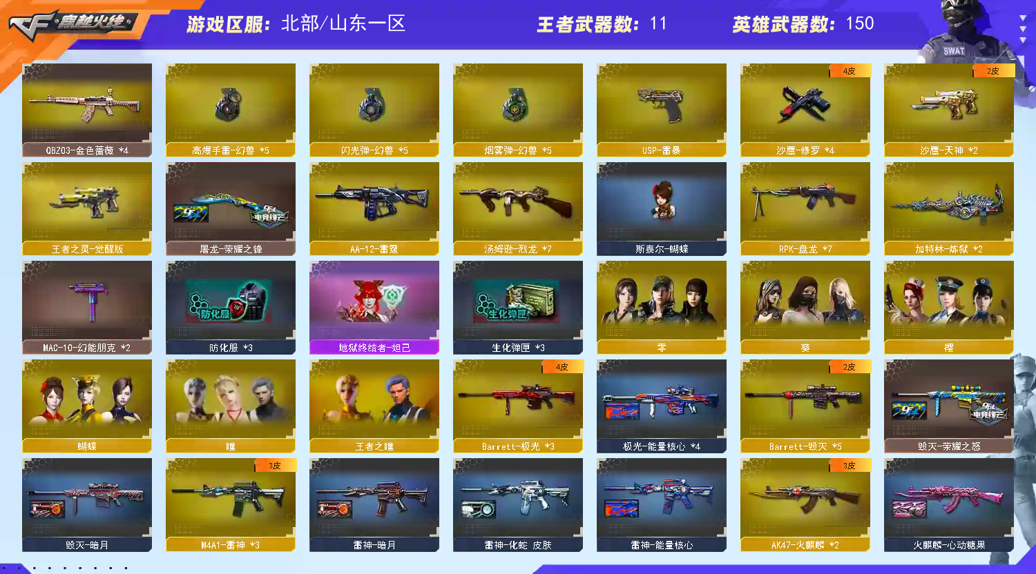 首页 > 租号大厅 > 穿越火线 > 网通区/山东一区 > 生化全装挑战号✅7烈龙蝴蝶+6盘龙炼狱🔥USP雷暴|幻兽全套|6黑骑士+音效卡|AA12雷霆全弹匣
