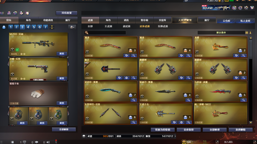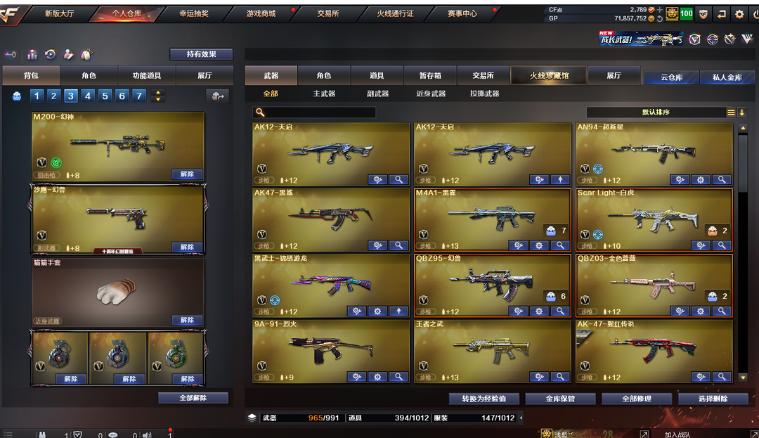 100V丨幻神丨白虎丨王者破空枪刃丨qbz蔷薇丨幻兽套丨雷霆套丨夜魔、雷暴刀丨炫、樱、葵、王者零;RPK-盘龙,QBZ03-金色蔷薇,M200-幻神,Scar Light-白虎,