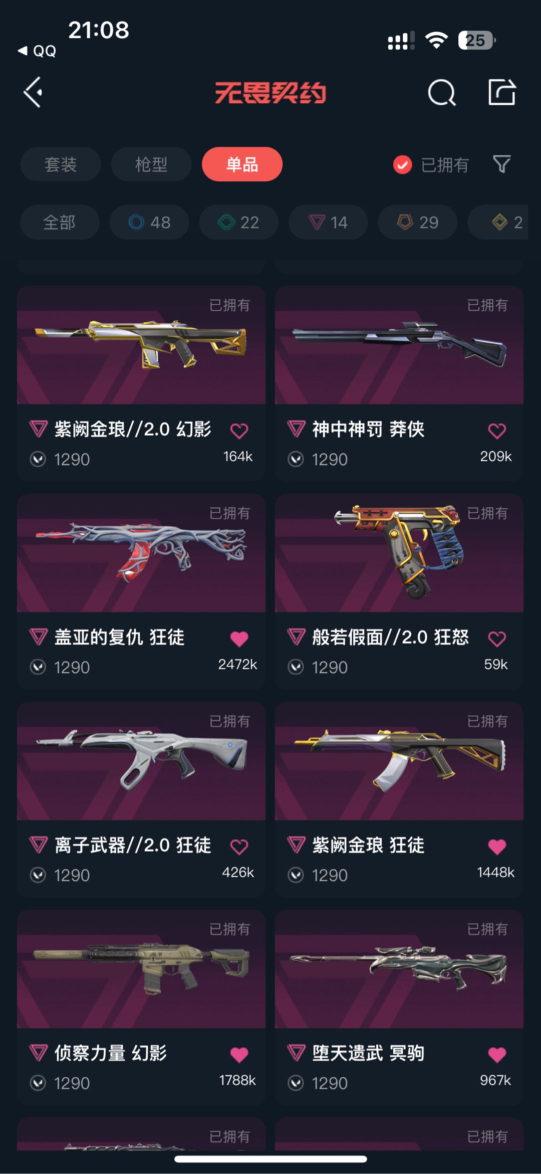 7.1w库存全单买✨25爪刀镭切太刀剥皮✨猫猫显卡光荣流脓等15把特效狂徒✨侦查天界幻影✨堕天大狙