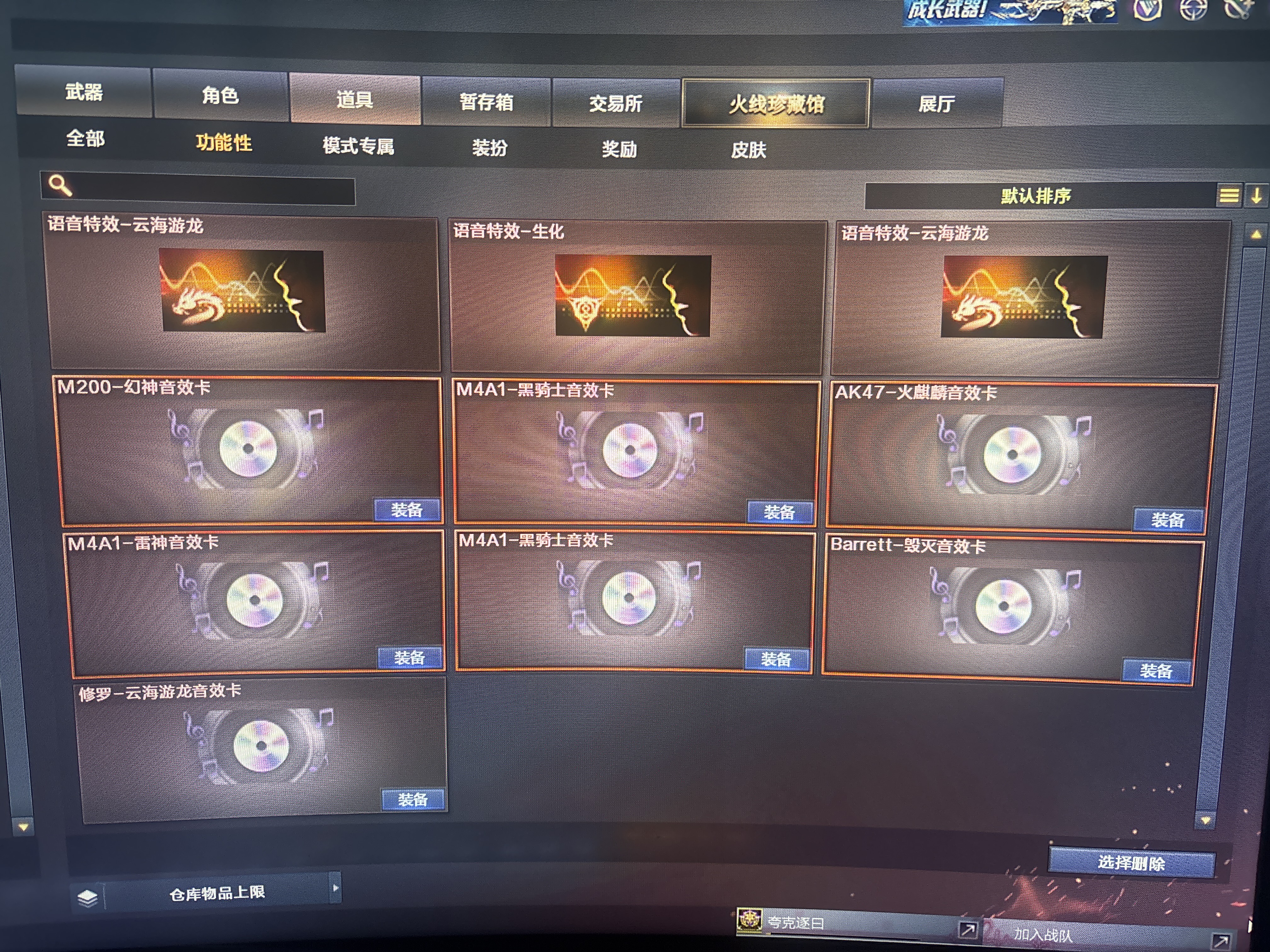 七张音效卡 满足你的需求;荣耀世冠-柯尔特,RPK-盘龙,QBZ03-金色蔷薇,M200-幻神,