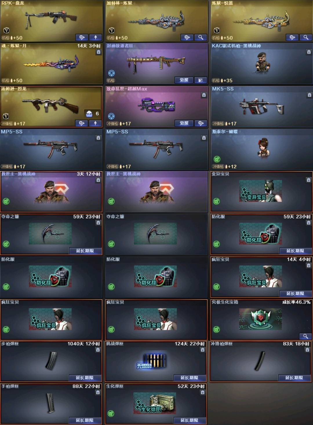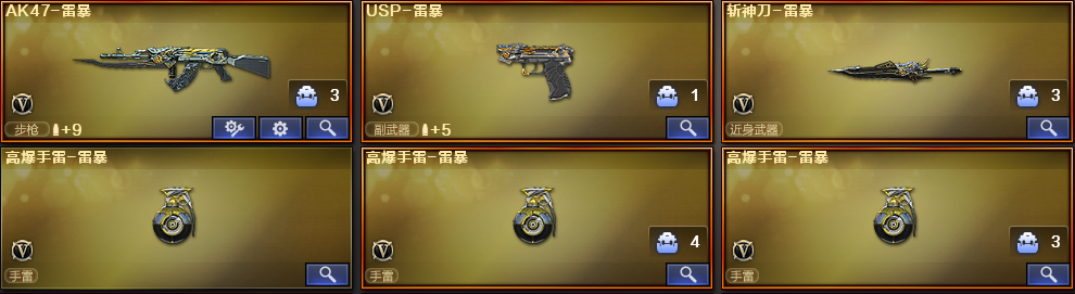雷暴套丨白虎王者之魄丨斯太尔蝴蝶加特林炼狱丨破空枪刃夜魔丨电竞套丨④防沙漠玫瑰丨