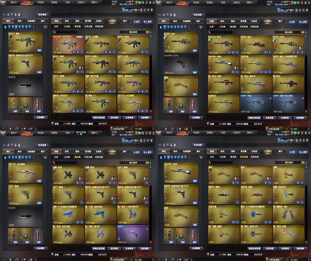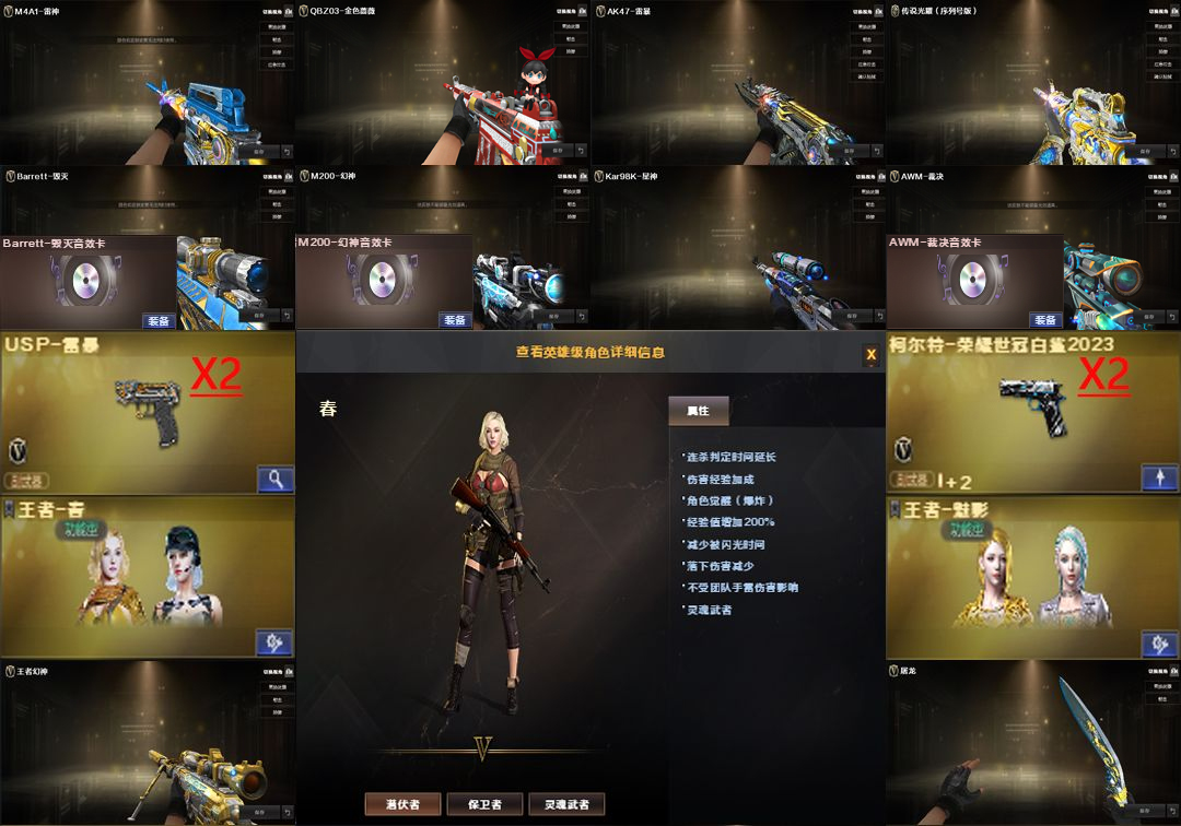 豹子序列号2222传说光耀;USP-雷暴,柯尔特-荣耀世冠白鲨2023,RPK-盘龙,QBZ03-金色蔷薇,M200-幻神,Kar98K-星神,
