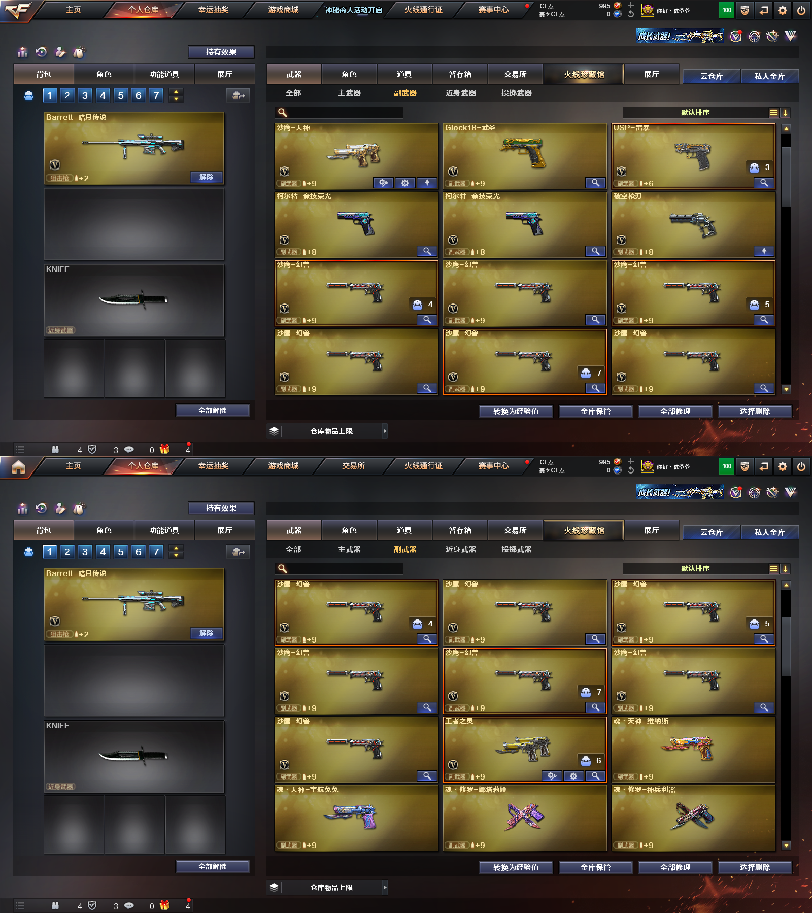 7幻兽✨竞技荣光套装✨6盘7烈✨炽芒蝶刃✨G36C幻影✨破空枪✨USP雷暴
