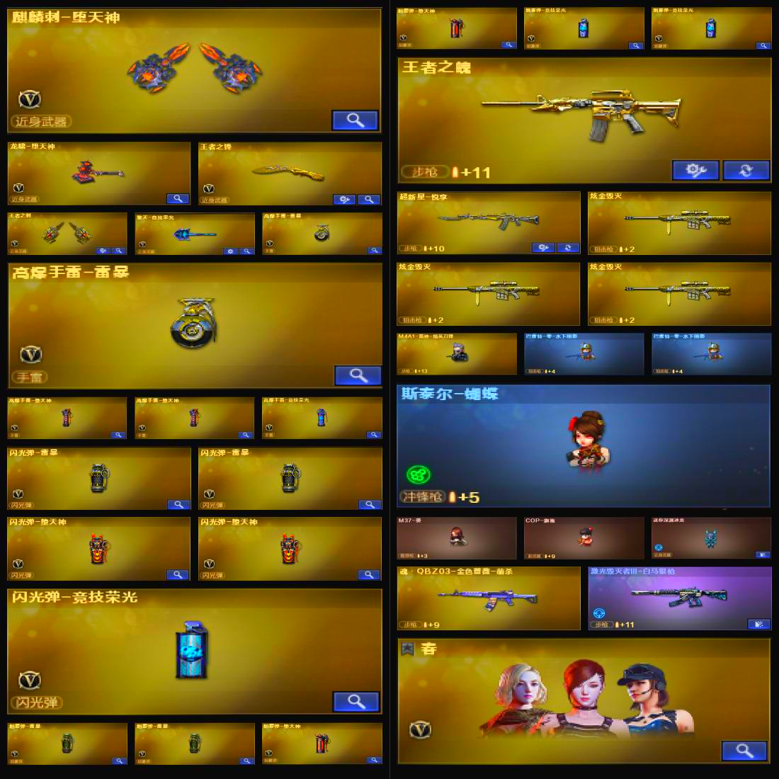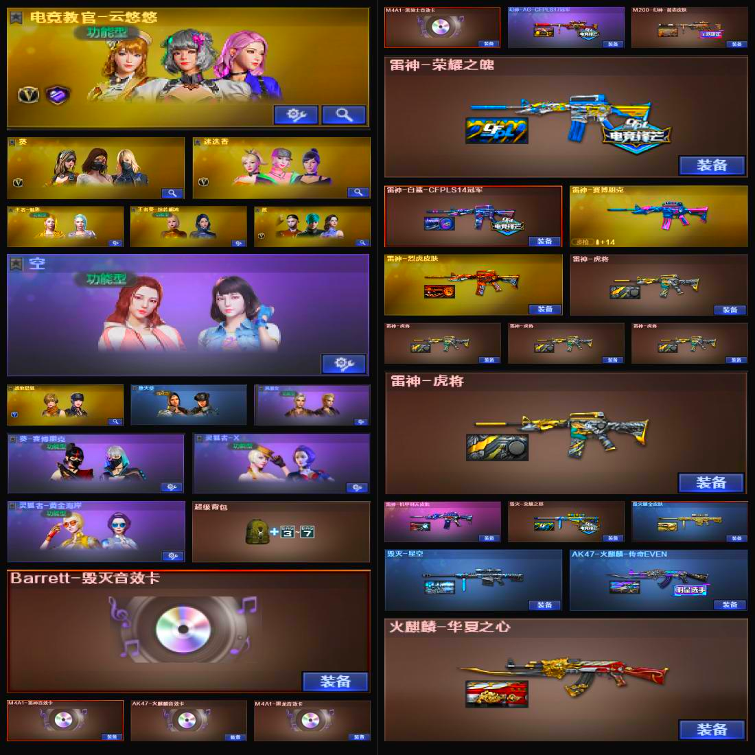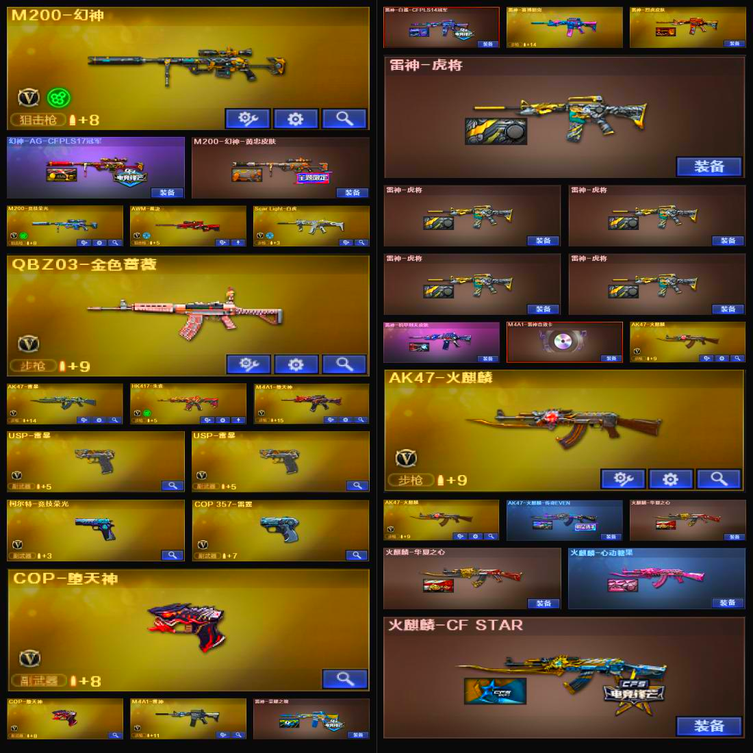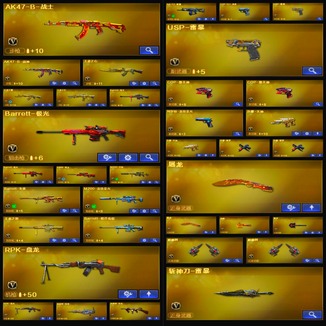 禁止开挂;USP-雷暴,电竞教官-云悠悠,RPK-盘龙,QBZ03-金色蔷薇,M200-幻神,Scar Light-白虎,