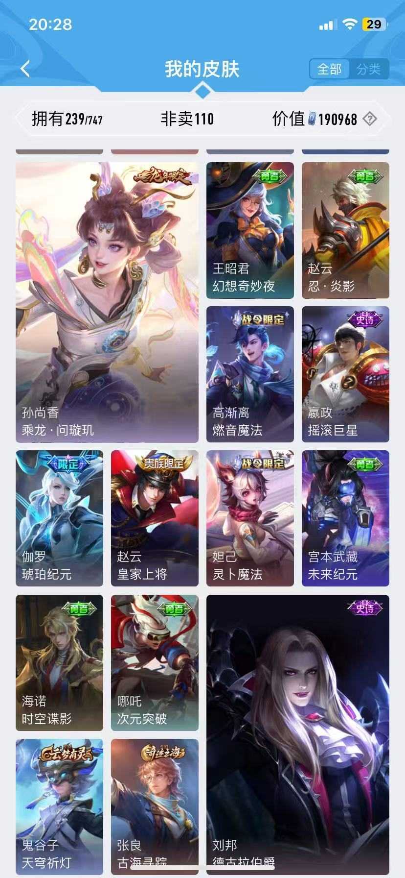 756皮肤♥皮肤共享道具多♥新皮肤已秒🎁无双荣耀v10V11v12 🎁满英雄🎃满荣耀皮肤,满铭文,安卓QQ230区。顶级神号装逼号牛逼(白菜)上不去