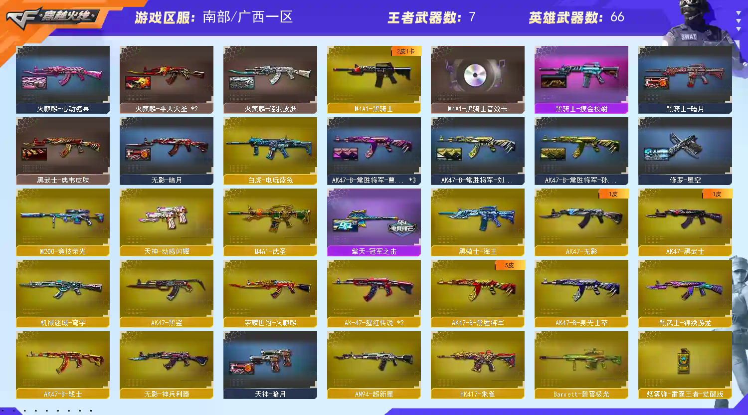 • 游戏区服:穿越火线 / 电信区 / 广西一区