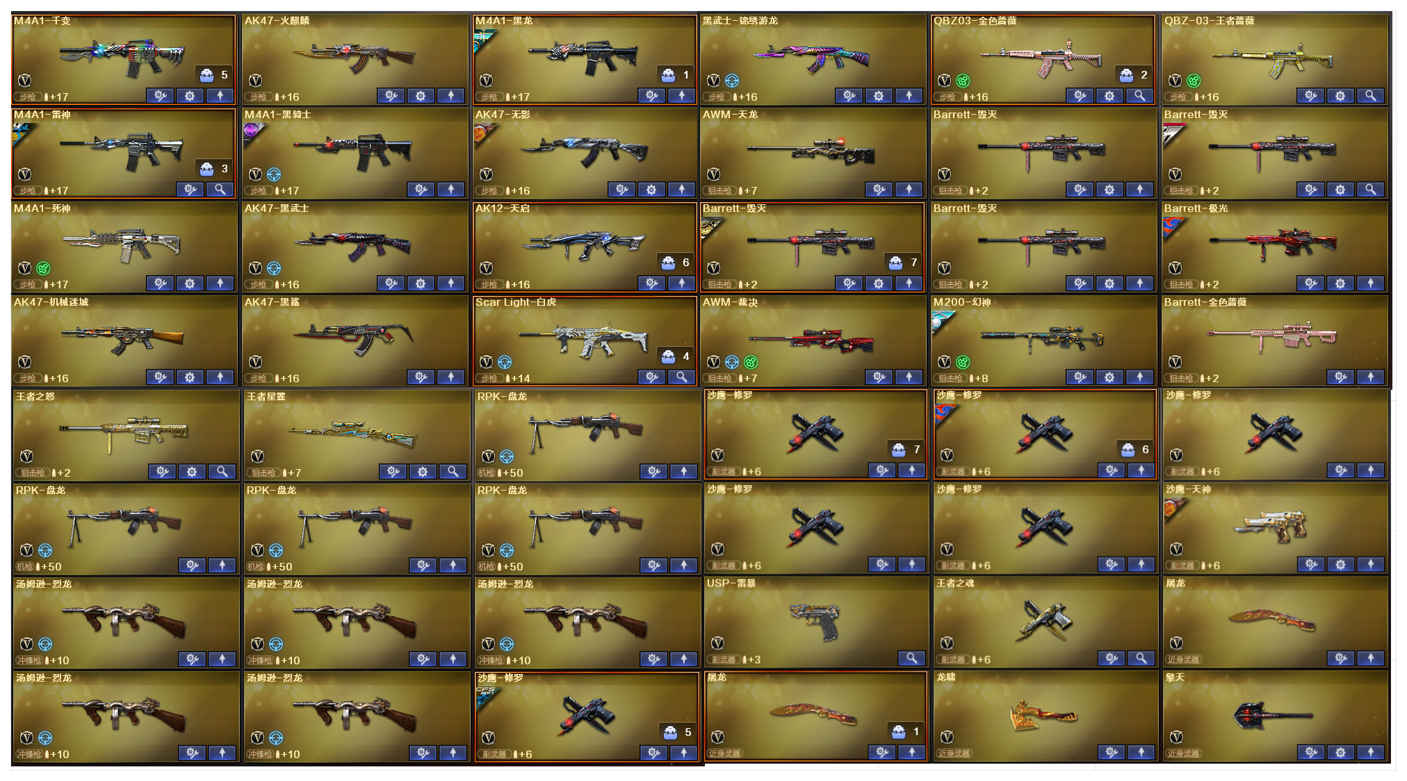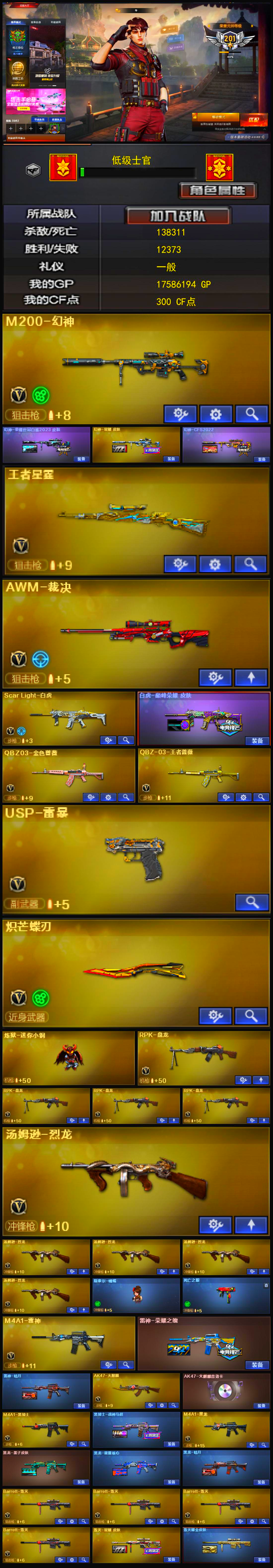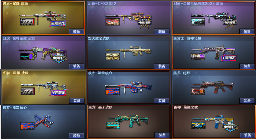 幻神3皮白鲨星耀CFS2022⭐白虎⭐王者星霆⭐炽芒蝶刃⭐USP雷暴⭐6盘6烈蝴蝶⭐荣耀之魄;USP-雷暴,炽芒蝶刃,RPK-盘龙,QBZ03-金色蔷薇,M200-幻神,Scar Light-白虎,