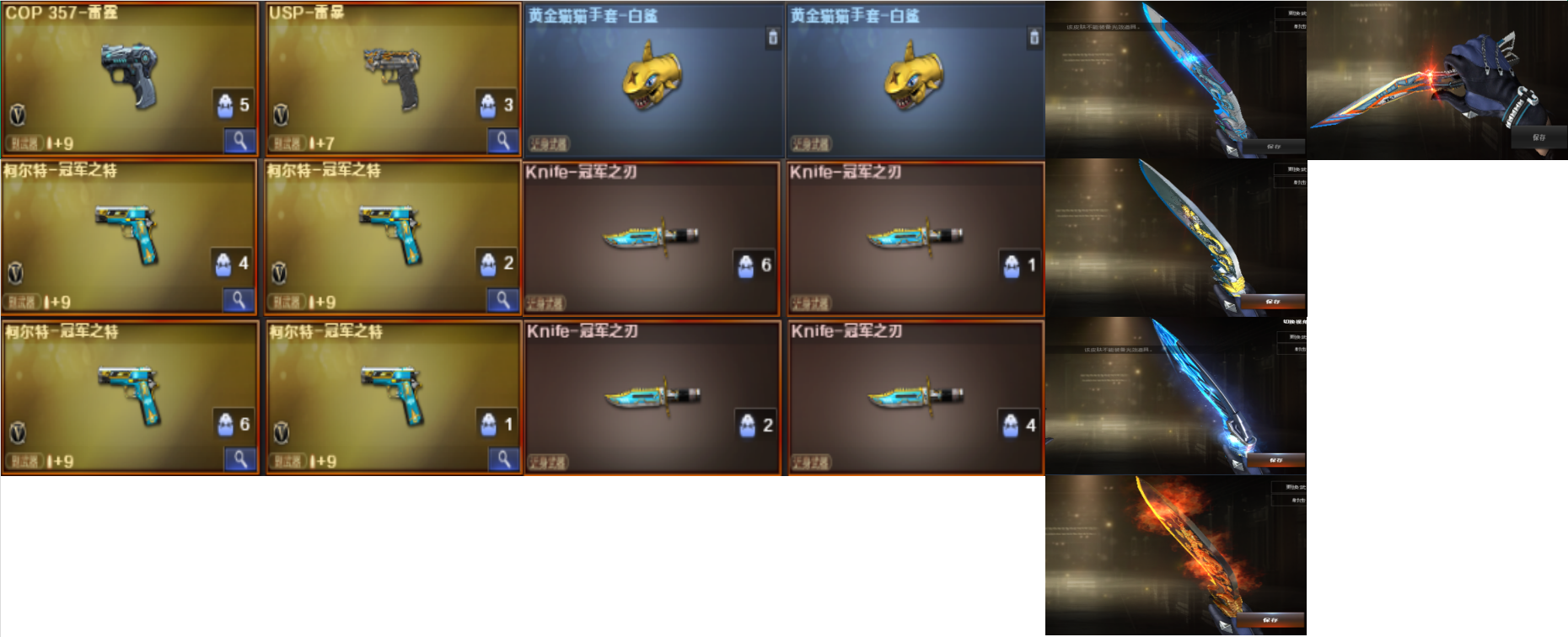 一直在补道具一般只补热门的 有些丑的不会抽;USP-雷暴,柯尔特-荣耀世冠白鲨2023,柯尔特-冠军之特,炽芒蝶刃,Knife-冠军之刃,晴雅,RPK-盘龙,