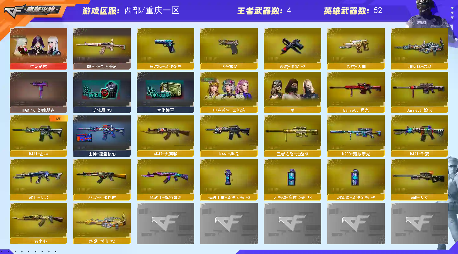 • 游戏区服:穿越火线 / 电信区 / 重庆一区