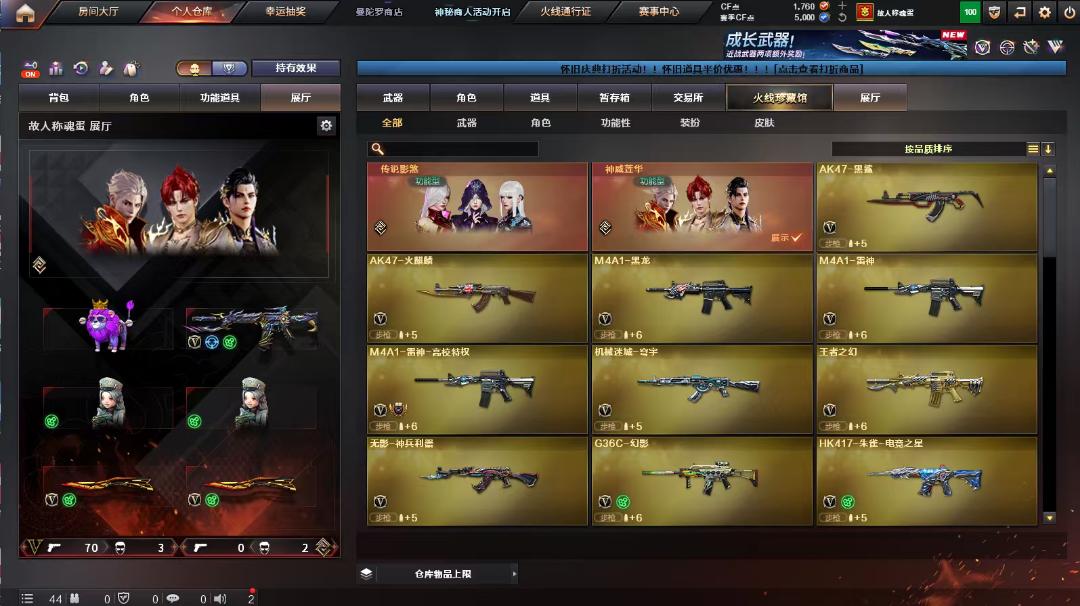 首页 > 租号大厅 > 穿越火线 > 电信区/江苏一区 > 爆破生化⭐神威莲华⭐影刹⭐幻神⭐G36C幻影⭐6烈6盘双炼狱国王狮⭐八面凌龙⭐蝴蝶⭐蛇影双娇⭐蝴蝶刀