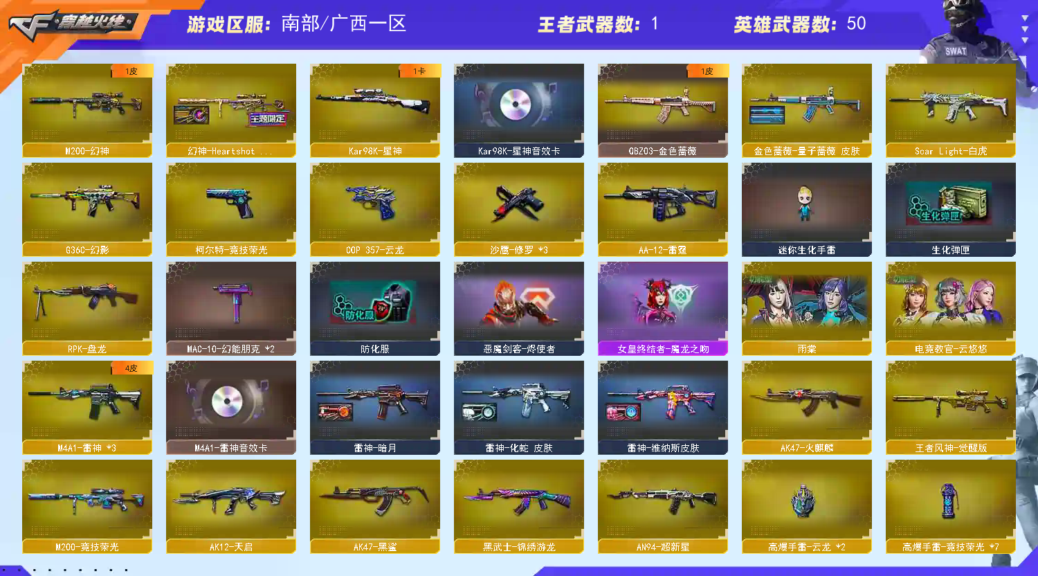 南部广西一老板虐菜号/竞技荣光套/g36c幻影白虎幻神风神星神带卡cop云龙