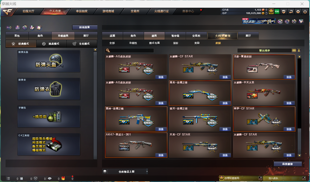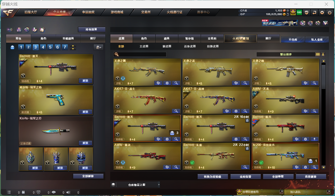 幻神竞技荣光,8质量副冠军之薇特刃,毁灭AG雷神荣耀黄金猫猫手套,裁决极光qbz火麒麟冠军6烈龙;USP-雷暴,荣耀世冠-柯尔特,柯尔特-冠军之特,Knife-冠军之刃,电竞教官-云悠悠,QBZ03-金色蔷薇,