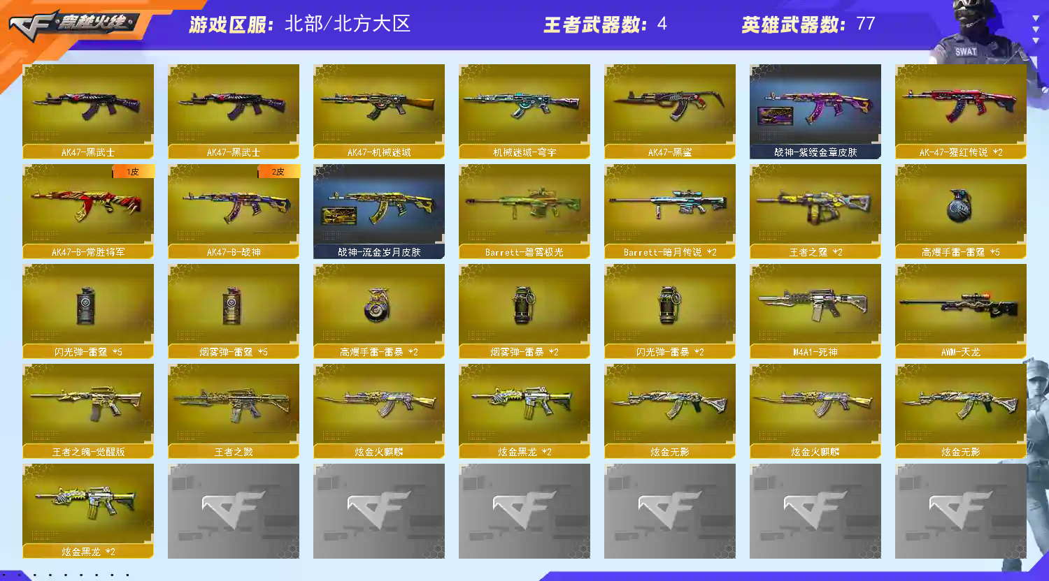 【允许排位】背摔炫+白虎-电玩蓝兔+QBZ03金色蔷薇+毁灭三件套+AWM天龙+cop雷霆+6盘6烈6黑装备看图文;RPK-盘龙,QBZ03-金色蔷薇,