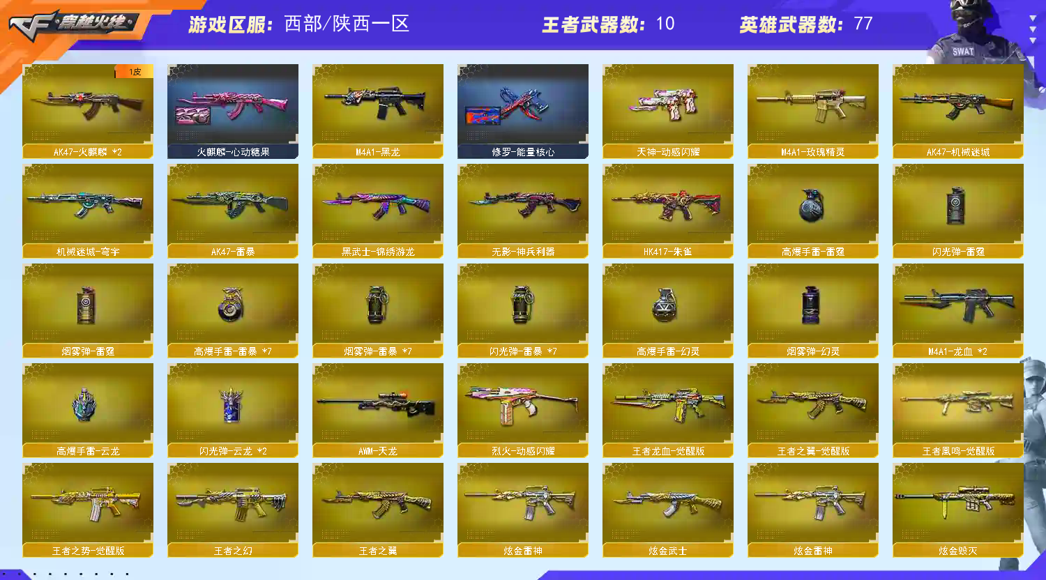 • 游戏区服:穿越火线 / 电信区 / 陕西一区