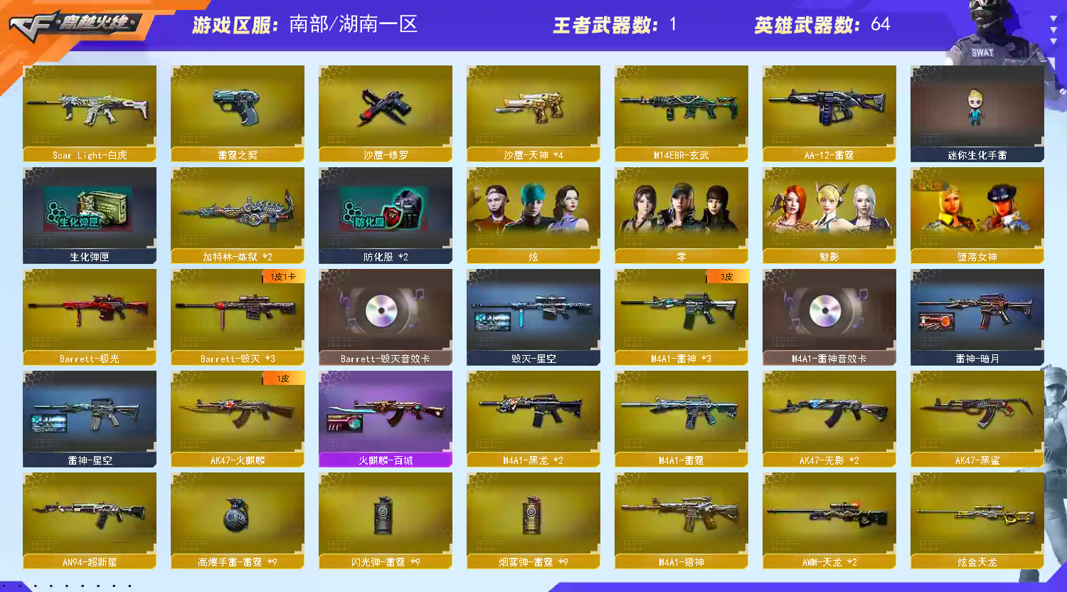 • 游戏区服:穿越火线 / 南部 / 湖南一区