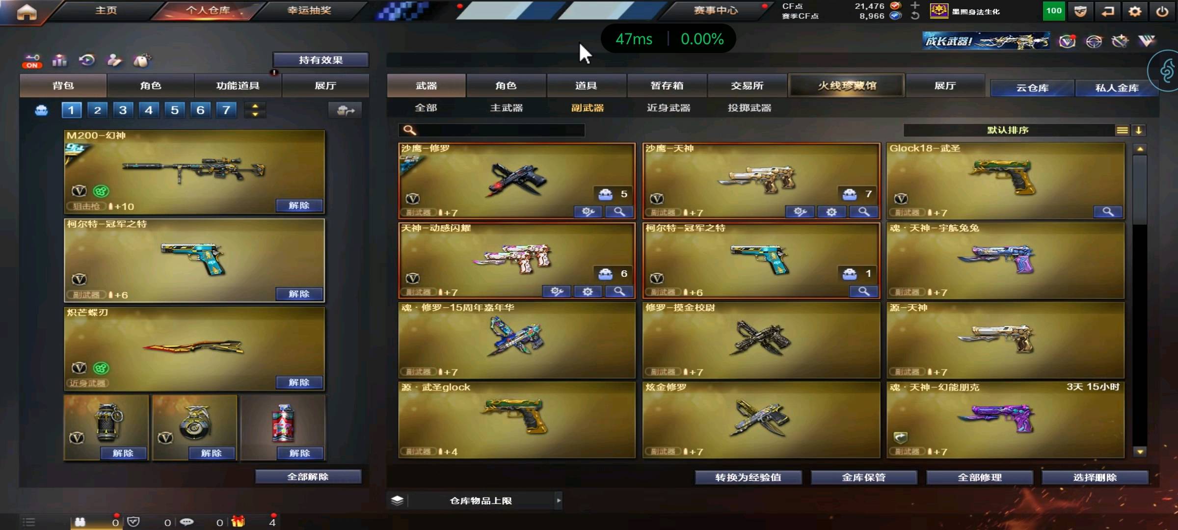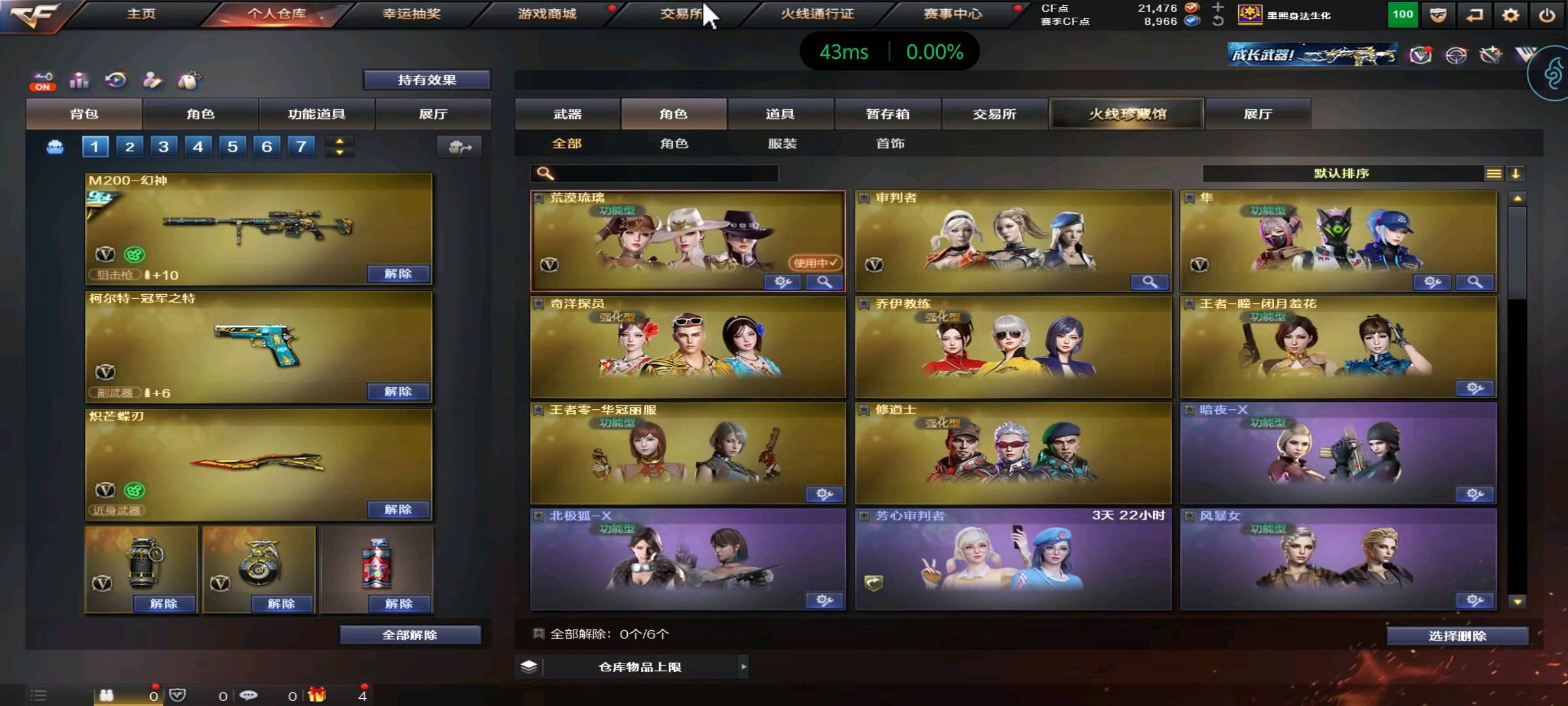 道具都有;柯尔特-冠军之特,炽芒蝶刃,Knife-冠军之刃,隼,QBZ03-金色蔷薇,M200-幻神,
