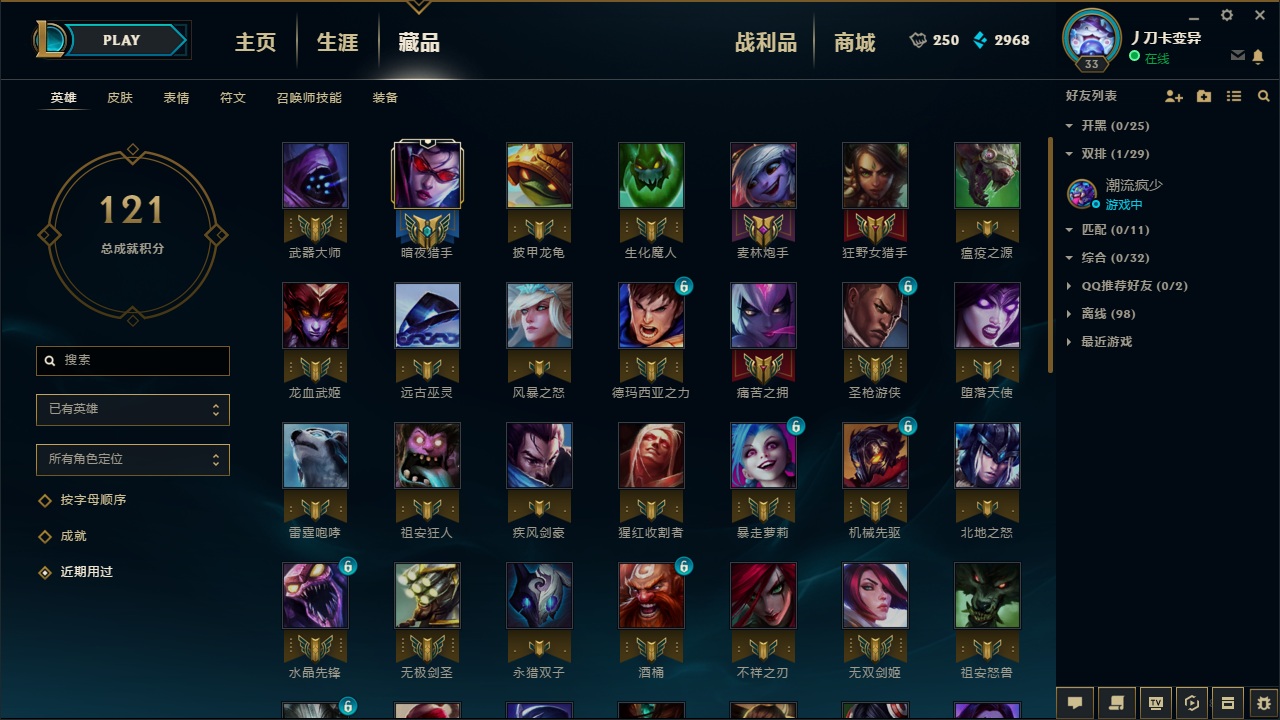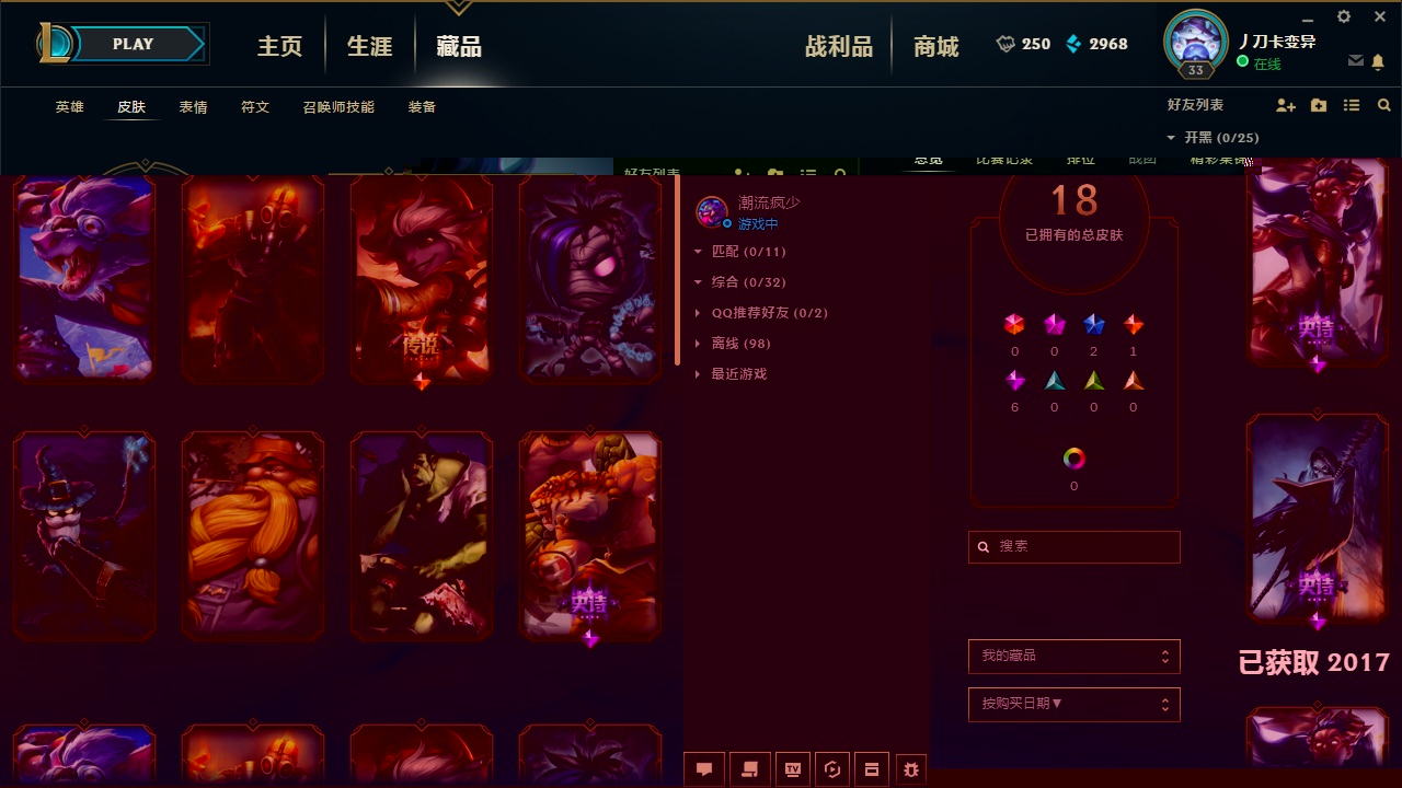 1011皮肤+4终极+21神话+25个三星小小英雄+福星新皮免费+摄魂VN至臻伊芙琳阿狸锤石塞娜瑞文