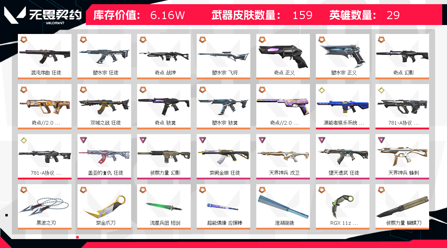 • 武器皮肤数量: 159