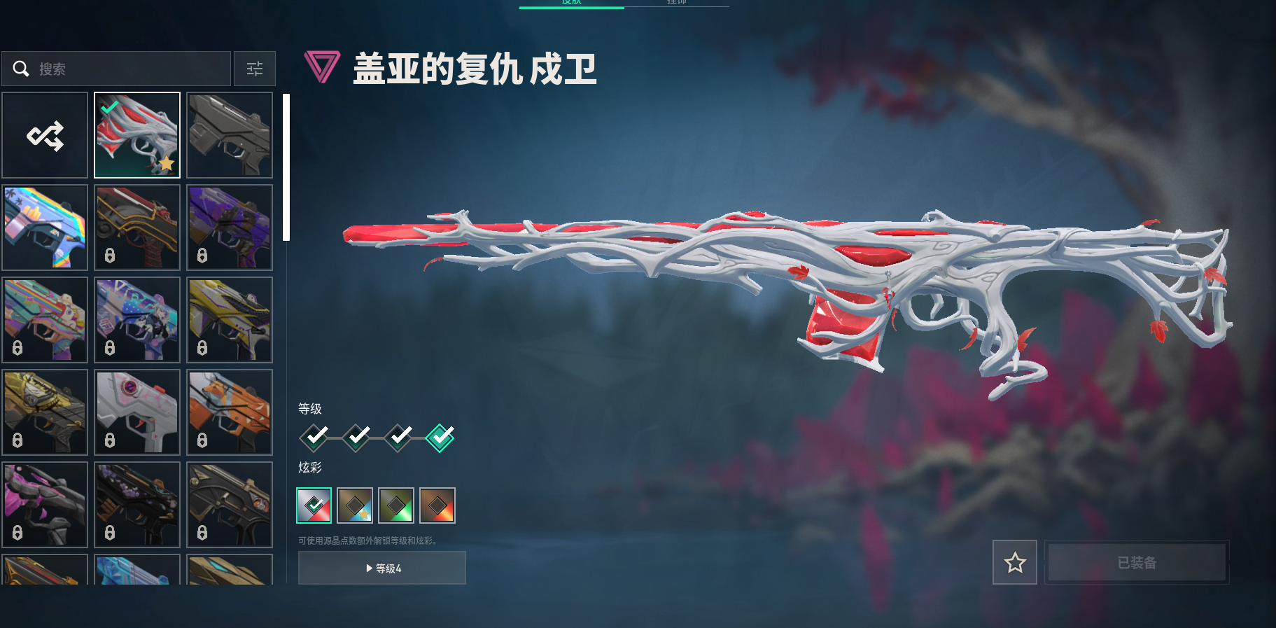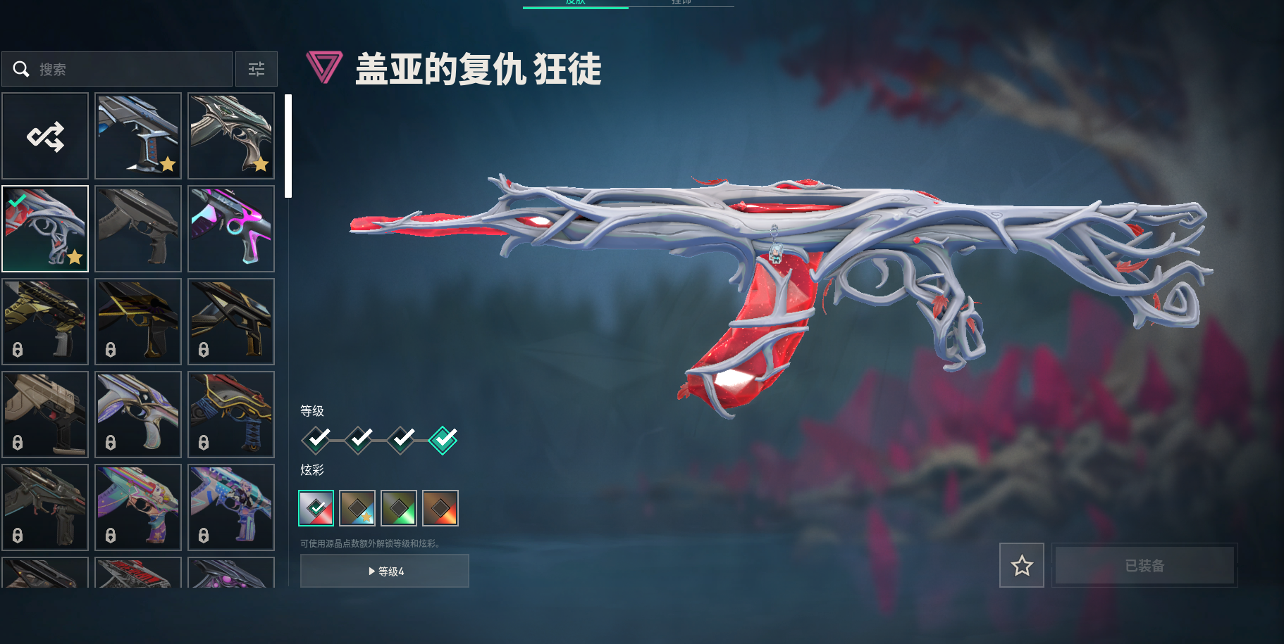 套装:盖亚的复仇套装 盖亚的复仇套装:盖亚的复仇狂徒V4|盖亚的复仇戍卫V4|盖亚的复仇鬼魅V4|盖亚的复仇飞将V4|盖亚之怒V2| 其他皮肤:塑水宗狂徒V4|堕天遗武狂徒V4|弧光异彩狂徒|彩梦之城戍卫|弧光异彩獠犬|信手涂鸦骇灵|弧光异彩蜂刺|彩梦之城雄鹿|偃月苍龙冥驹V4|信手涂鸦飞将|信手涂鸦奥丁|沙尘幻旅正义|复古浪潮正义|西部未来正义V4|星云暗涌鬼魅|信手涂鸦鬼魅|宿怨鬼魅|光导纤维鬼魅|弧光异彩短炮|彩梦之城标配|弧光异彩军刀|;盖亚的复仇 狂徒,堕天遗武 狂徒,塑水宗 狂徒,西部未来 正义,