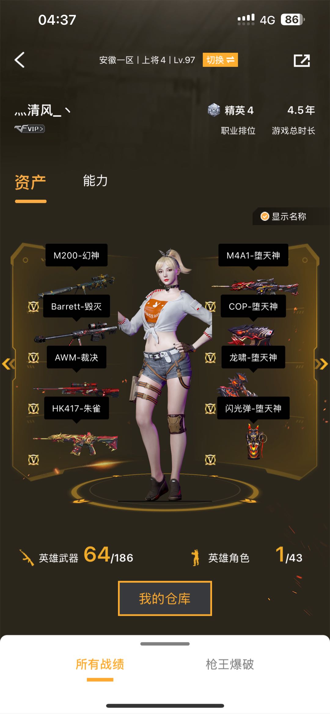 可排位;QBZ03-金色蔷薇,M200-幻神,