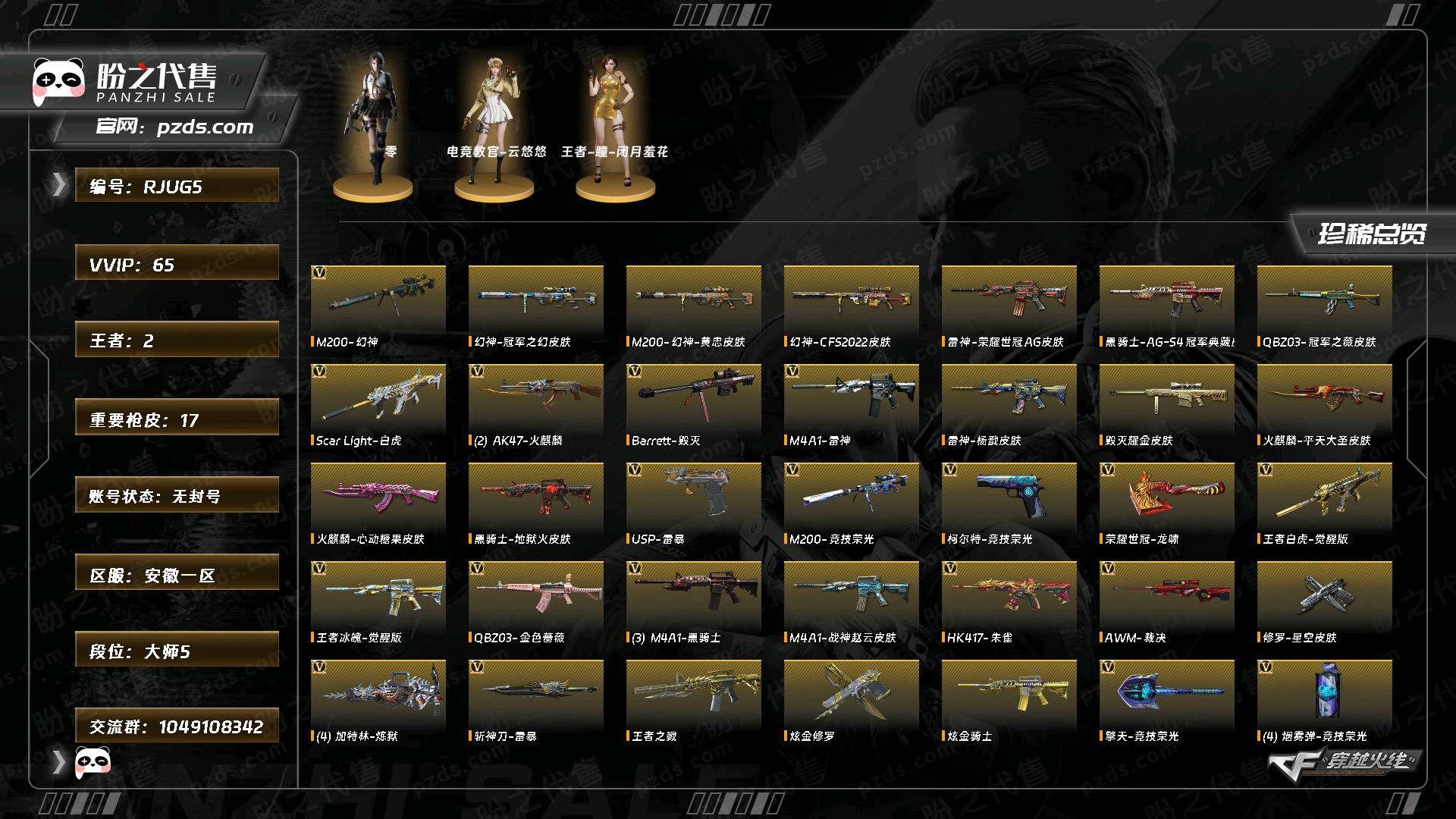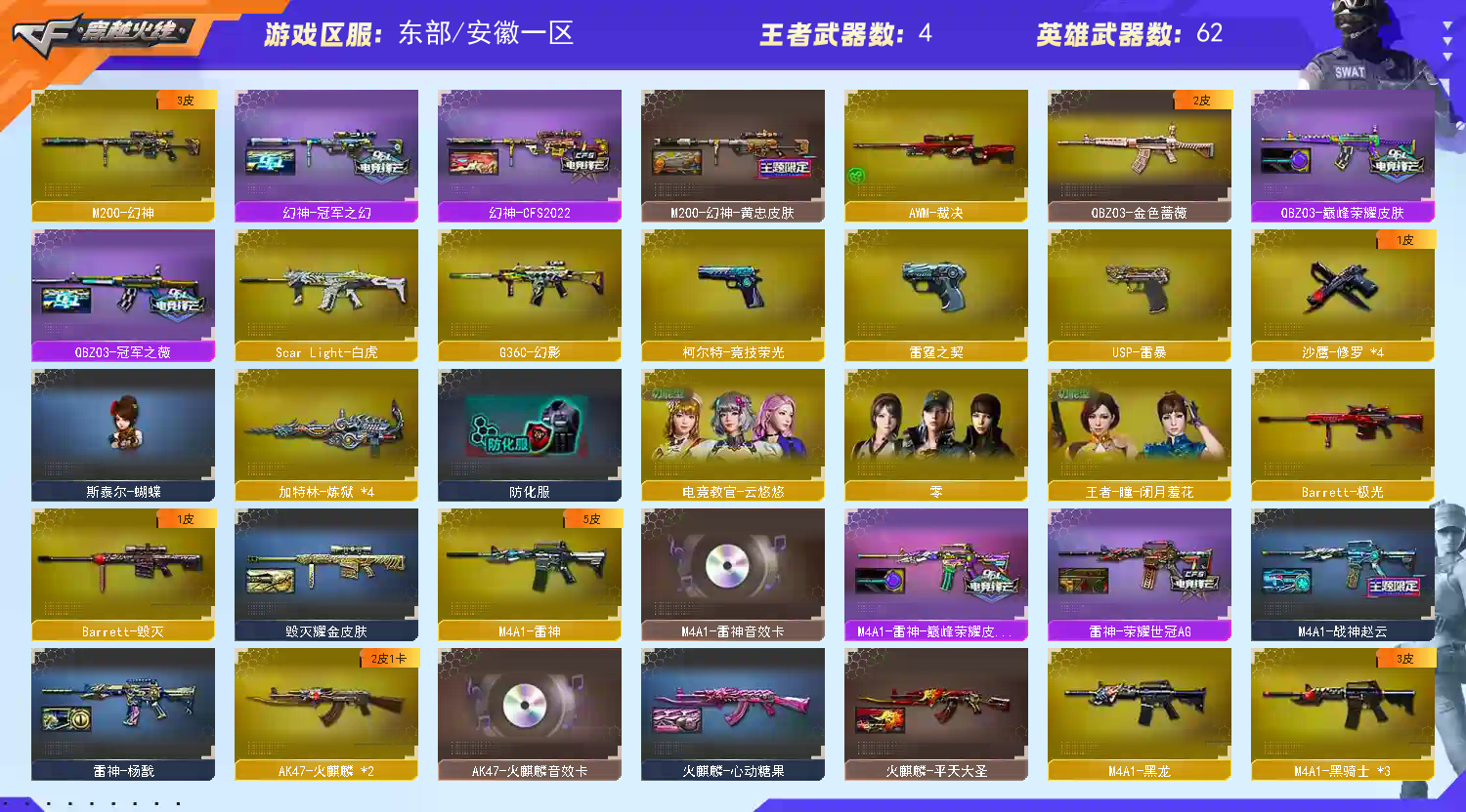 首页 > 租号大厅 > 穿越火线 > 电信区/安徽一区 > 幻神cfs2022冠军之幻 竞技荣光全套 五把高质量副手 qbz巅峰荣耀冠军之薇王者白虎 usp雷暴