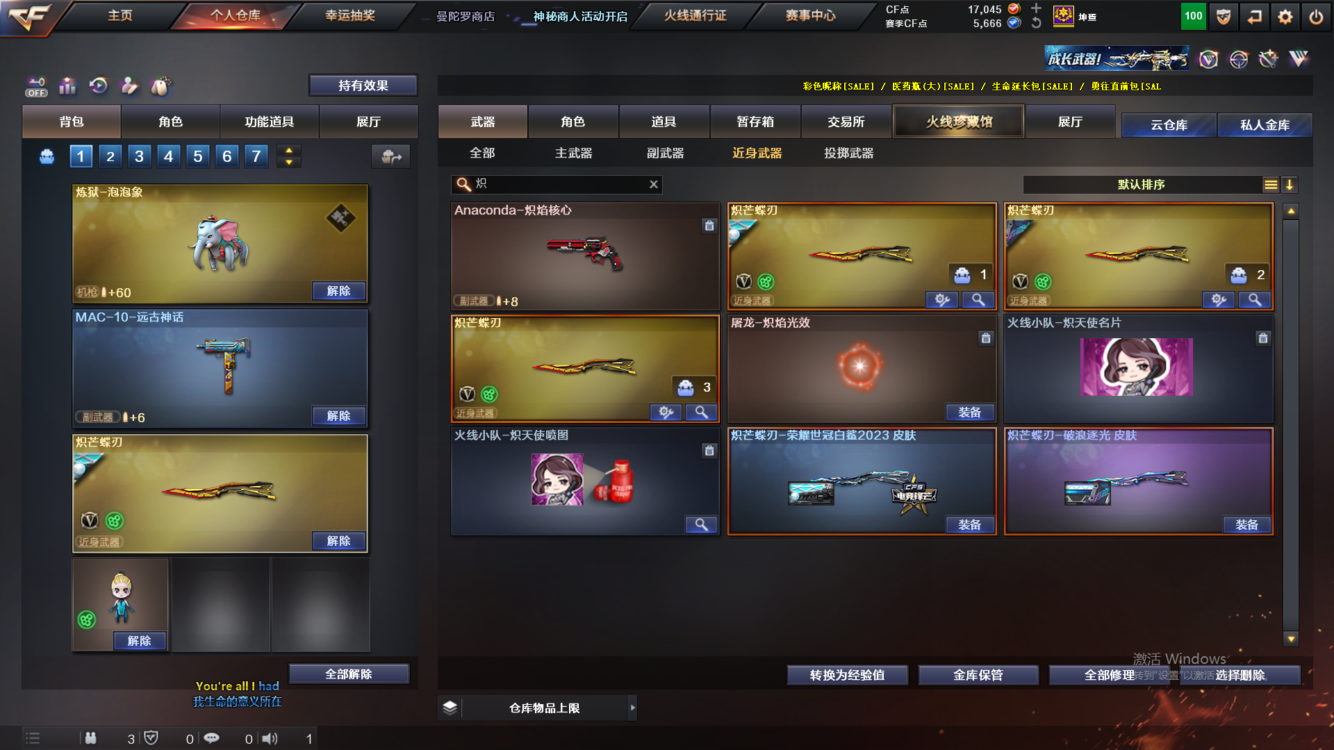 传说星骇 传说影煞 泡泡象 蝴蝶刀x3 炽芒蝶刃 双玄武 王者玄武 五列三小人枪 usp雷暴 世冠柯尔特;USP-雷暴,柯尔特-荣耀世冠白鲨2023,炽芒蝶刃,传说影煞,传说星骇,RPK-盘龙,QBZ03-金色蔷薇,
