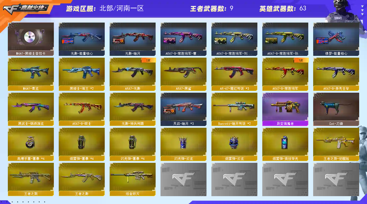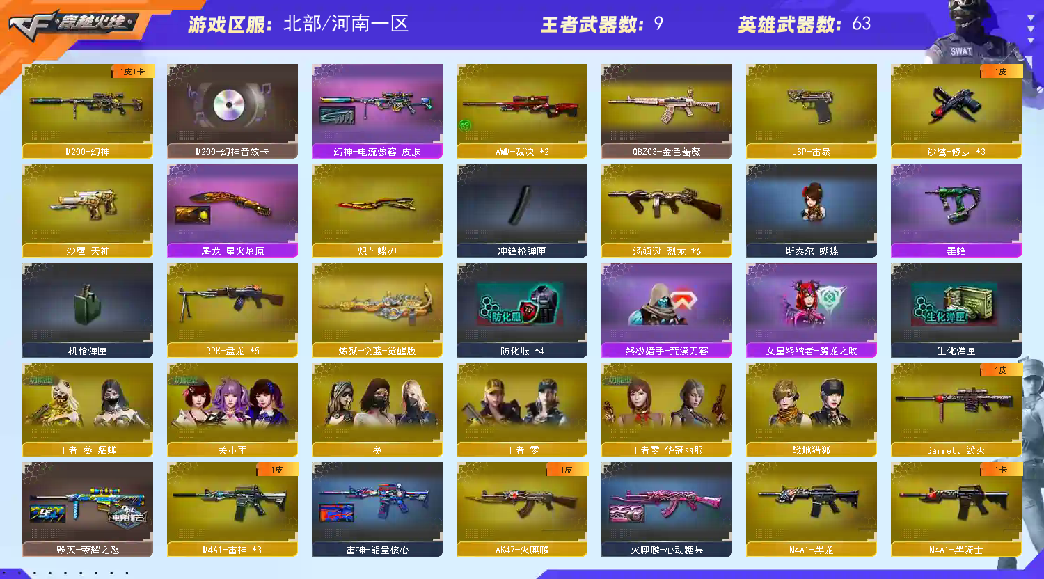 首页 > 租号大厅 > 穿越火线 > 网通区/河南一区 > 幻神三件套❤️⑥烈蝴蝶+毒蜂⑥盘炼狱+炽芒蝶刃❤️AWM裁决+USP雷暴❤️④防关小雨王者貂蝉❤️