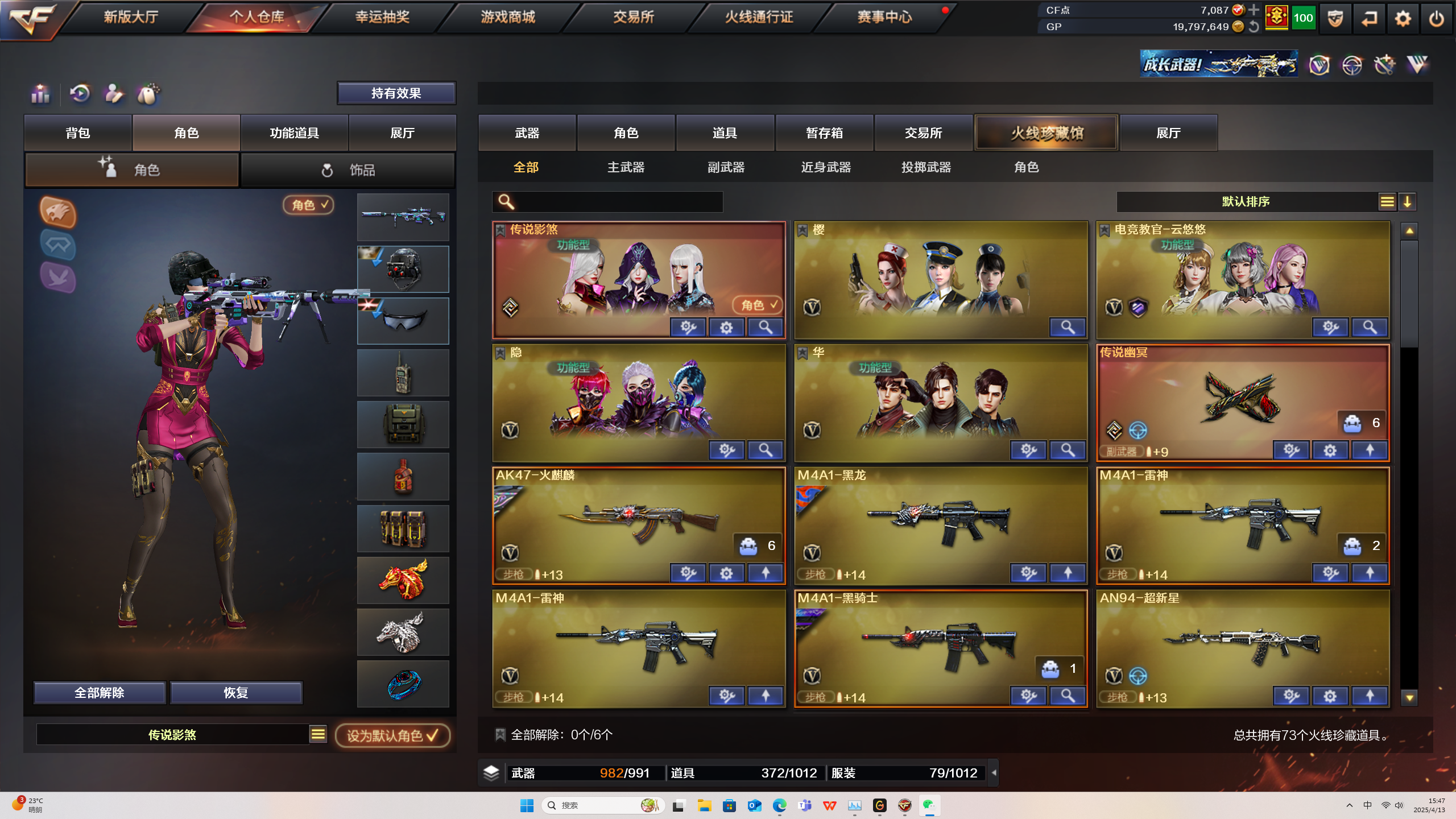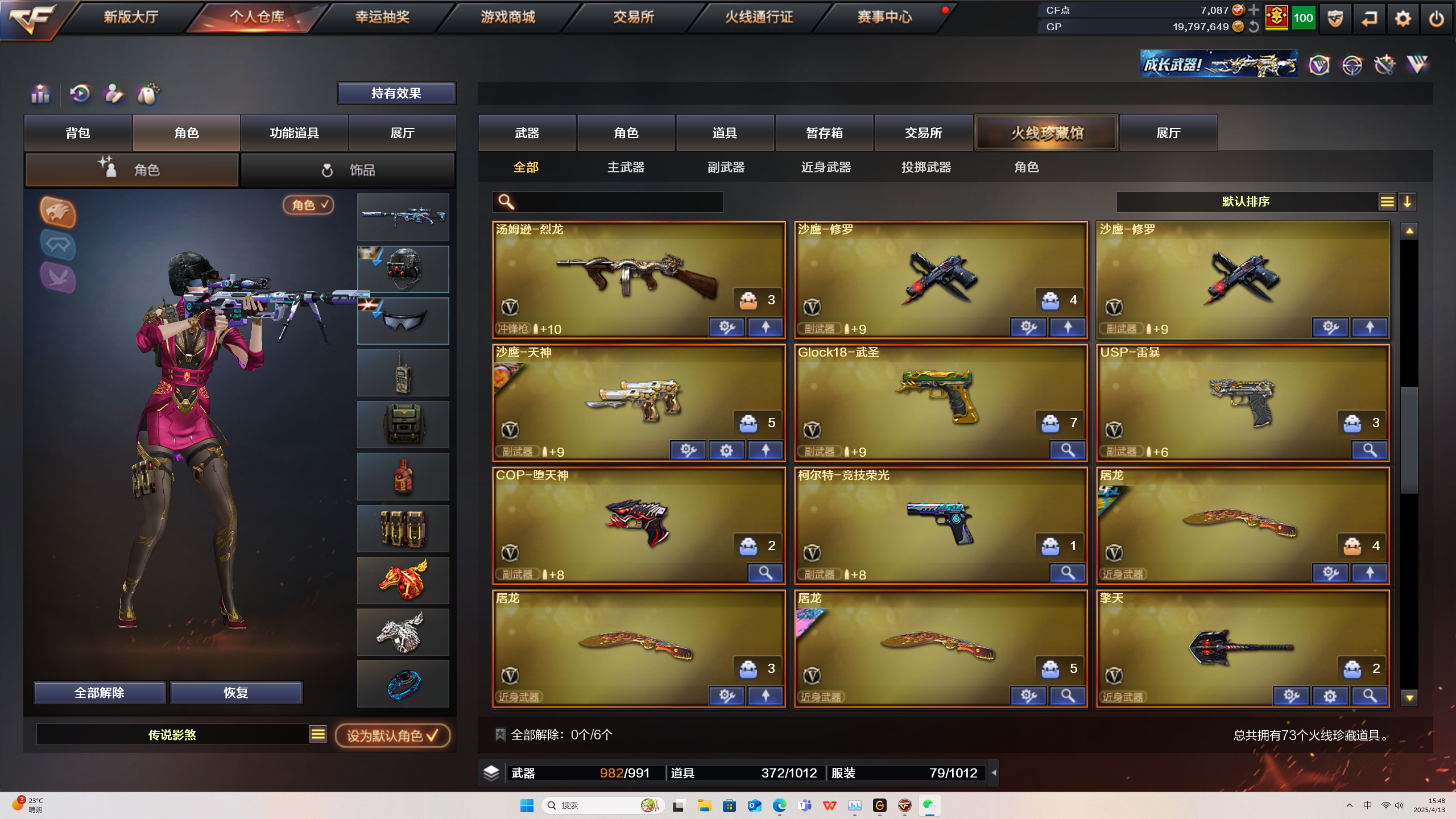 传说影煞炽芒蝶刃三模式四防角色属性已洗好传说幽冥雷暴USP竞技荣光套QBZ凤吟岩刺