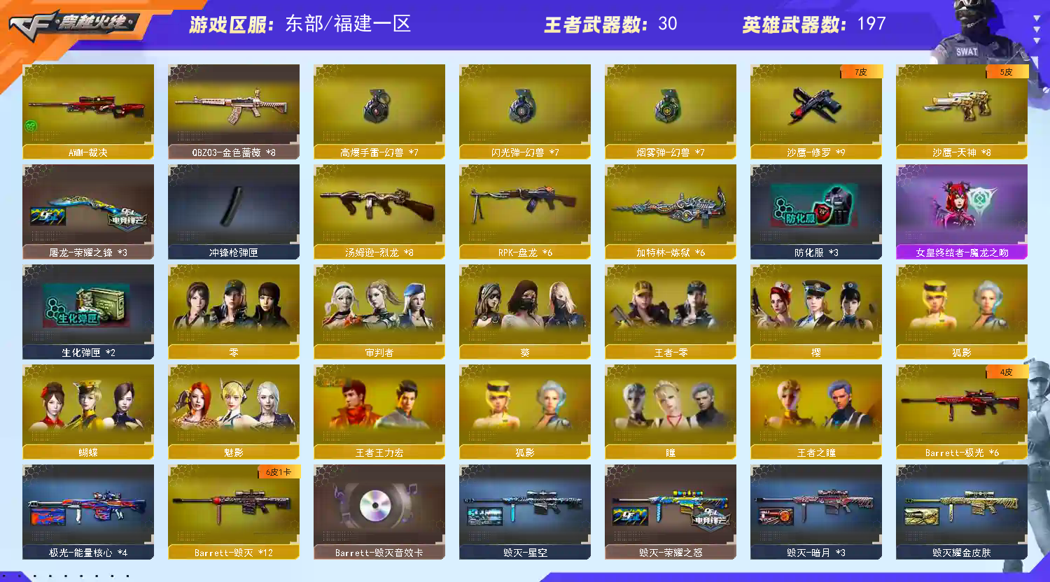 首页 > 租号大厅 > 穿越火线 > 电信区/福建一区 > 【LB79】206VQBZ蔷薇觉醒王者光雷火毁黑音卡★荣耀套⒙赛事套冠军心炼狱6盘6烈6修雷霆幻兽套