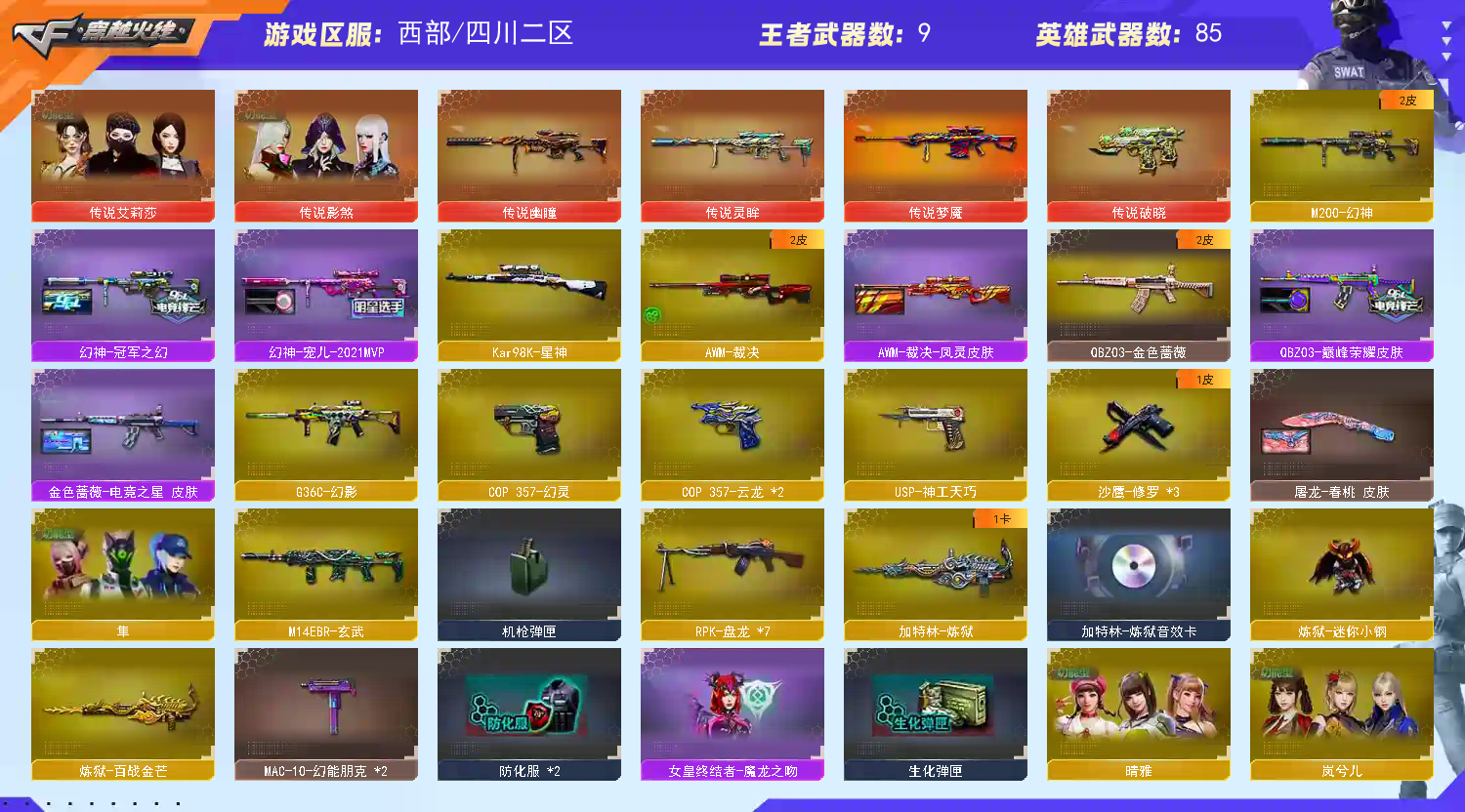 西部80v✨6传说✨传说幽瞳梦魇灵眸破晓✨传说艾莉莎影煞✨幻神雷神宠儿➕冠军之幻✨G3幻影✨星神;炽芒蝶刃,传说影煞,隼,晴雅,传说艾莉莎,RPK-盘龙,QBZ03-金色蔷薇,