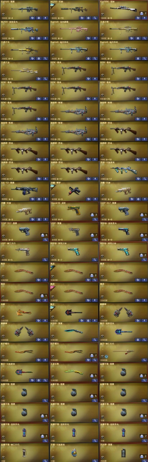 传说灵眸+织芒蝶刃+幻神冠军之幻幻音+冠军之特2薇刃+usp2cop2+星神+白虎套+6盘6烈小刚