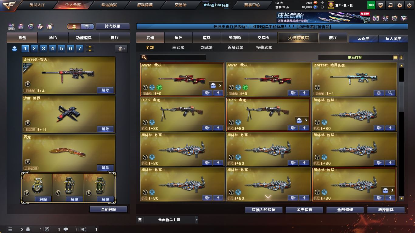 【白虎之魄】【QBZ03-金色蔷薇】【生化 2盘龙 6炼狱 2烈龙 蝴蝶 死亡之眼】【裁决】【毁灭】【极光+音效卡】【雷暴】【火麒麟+音效卡】【黑龙】【雷神+音效卡】【黑骑士+音效卡】【王者之翼 王者之幻 王者之圣】【死神 黑武士 黑鲨 hk417-朱雀】【9手枪 修罗*5 天神 usp雷暴*2】【9近战 屠龙*4 龙啸 擎天 麒麟刺*2 斩神刀雷暴】【手雷 雷暴雷*7】【角色 春 葵 樱 乔伊教练】;USP-雷暴,RPK-盘龙,QBZ03-金色蔷薇,