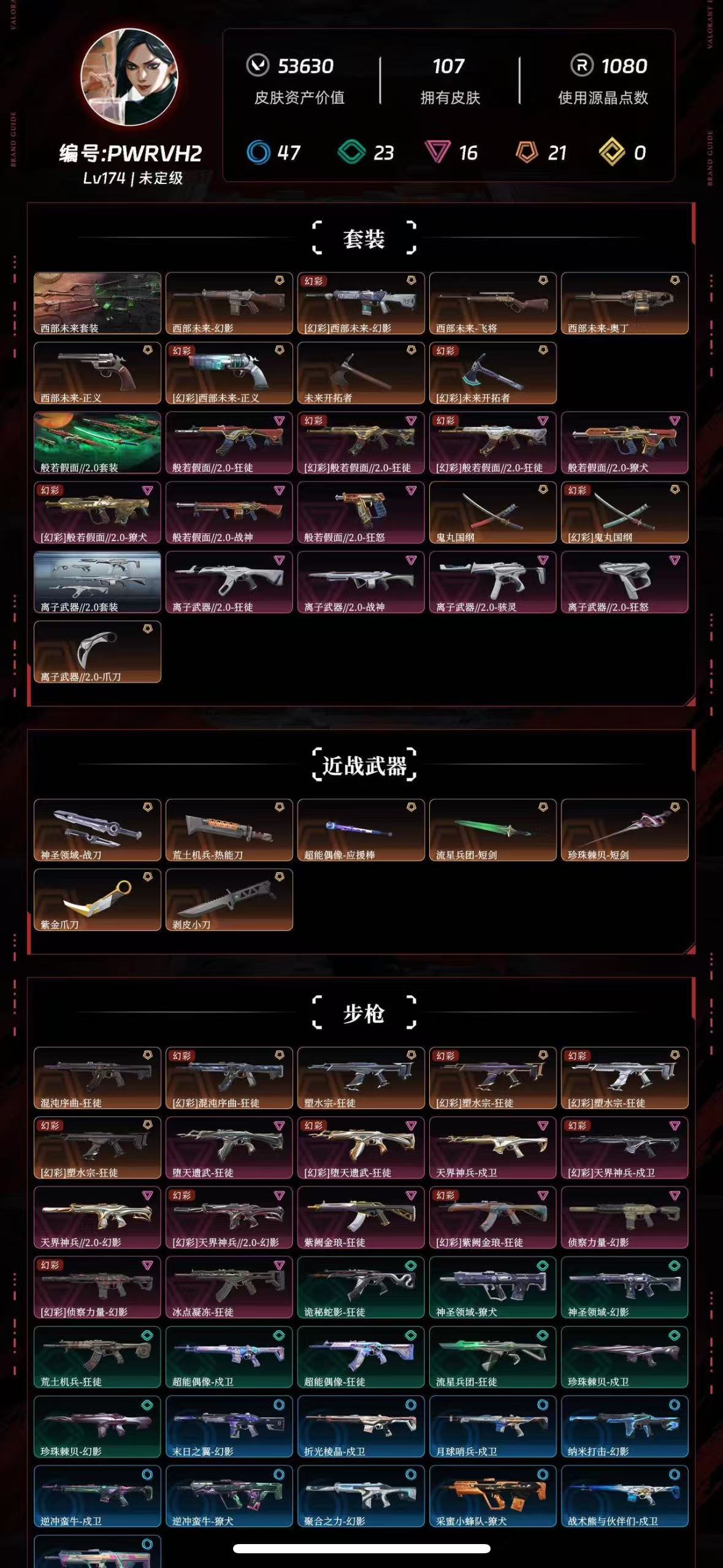 【拥有套装】离子武器//2.0套装(离子武器//2.0-狂徒,离子武器//2.0-战神,离子武器//2.0-骇灵,离子武器//2.0-狂怒,离子武器//2.0-爪刀)西部未来套装(西部未来-幻影,西部未来-奥丁,西部未来-飞将,西部未来-正义,未来开拓者)般若假面2.0套装(般若假面//2.0-狂徒,般若假面//2.0-獠犬,般若假面//2.0-战神,般若假面//2.0-狂怒,鬼丸国纲)