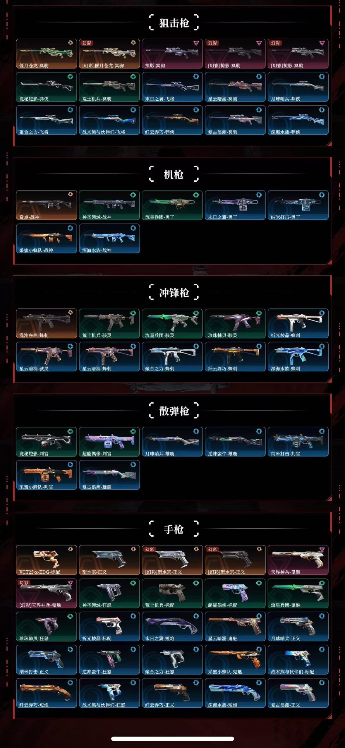 【拥有步枪】混沌序曲-狂徒,塑水宗-狂徒,堕天遗武-狂徒,天界神兵-戍卫,天界神兵//2.0-幻影,紫阙金琅-狂徒,侦察力量-幻影,冰点凝冻-狂徒