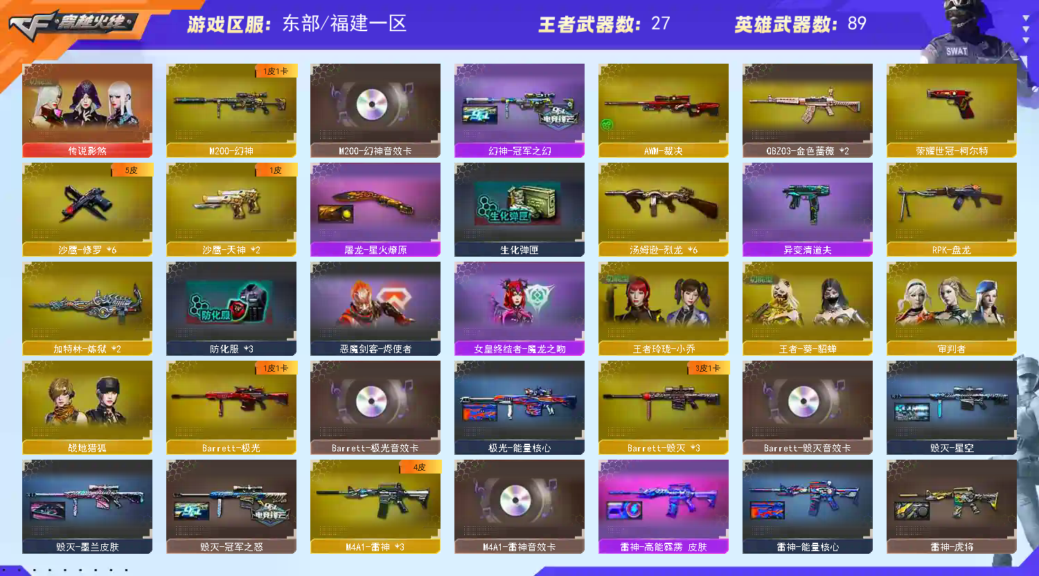 100v/四防影煞/幻神三件套/世冠套/网剧套/6烈龙/四防零/四防貂蝉/毁灭三件套/雷神三件套/黑;荣耀世冠-柯尔特,传说影煞,RPK-盘龙,QBZ03-金色蔷薇,M200-幻神,