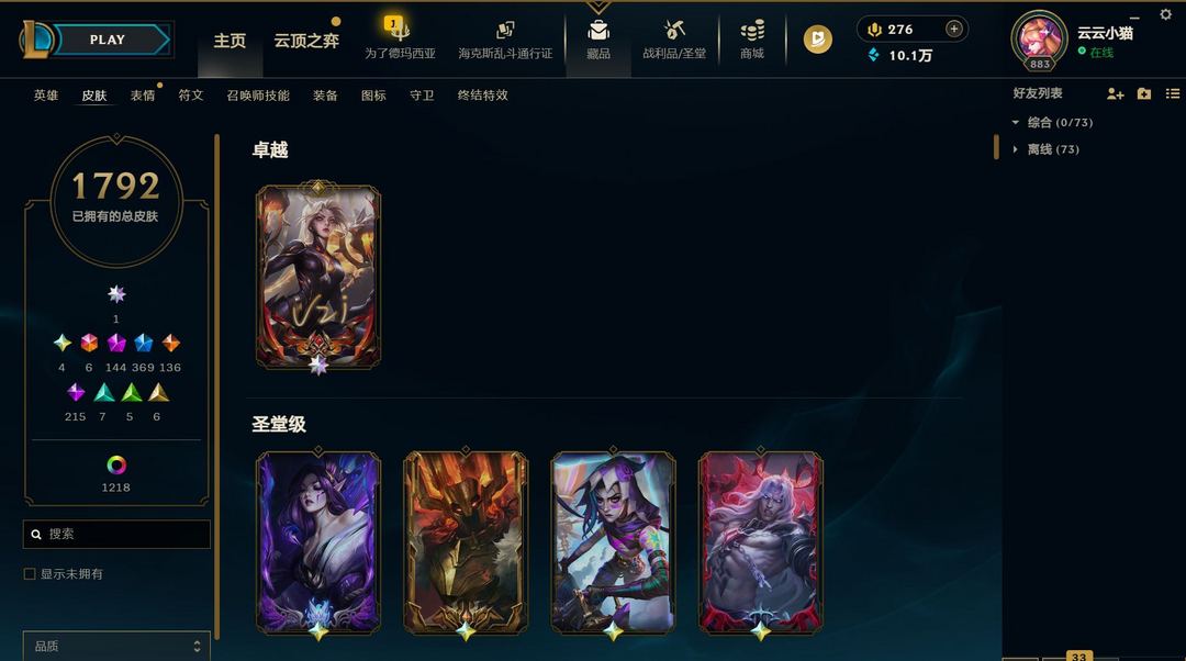 1255皮🌼满神话+全系列至臻皮肤(有最新至臻)+3星小小英雄+周年男女刀+黑夜吸血鬼+海克斯皮肤多+全英雄高质量皮肤号