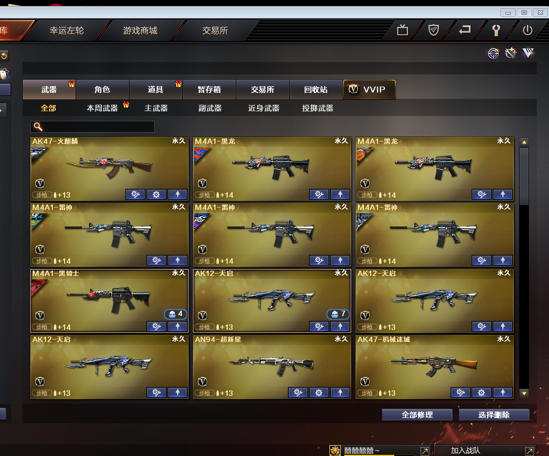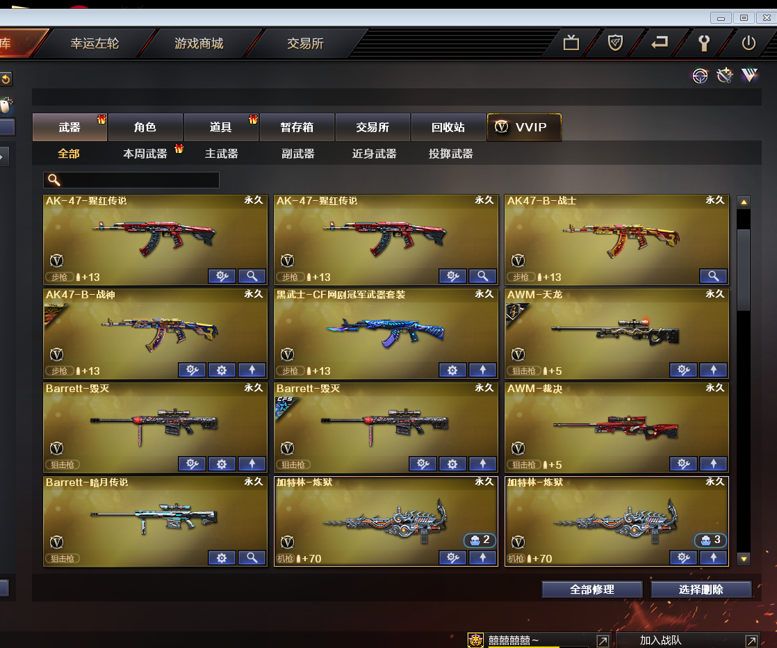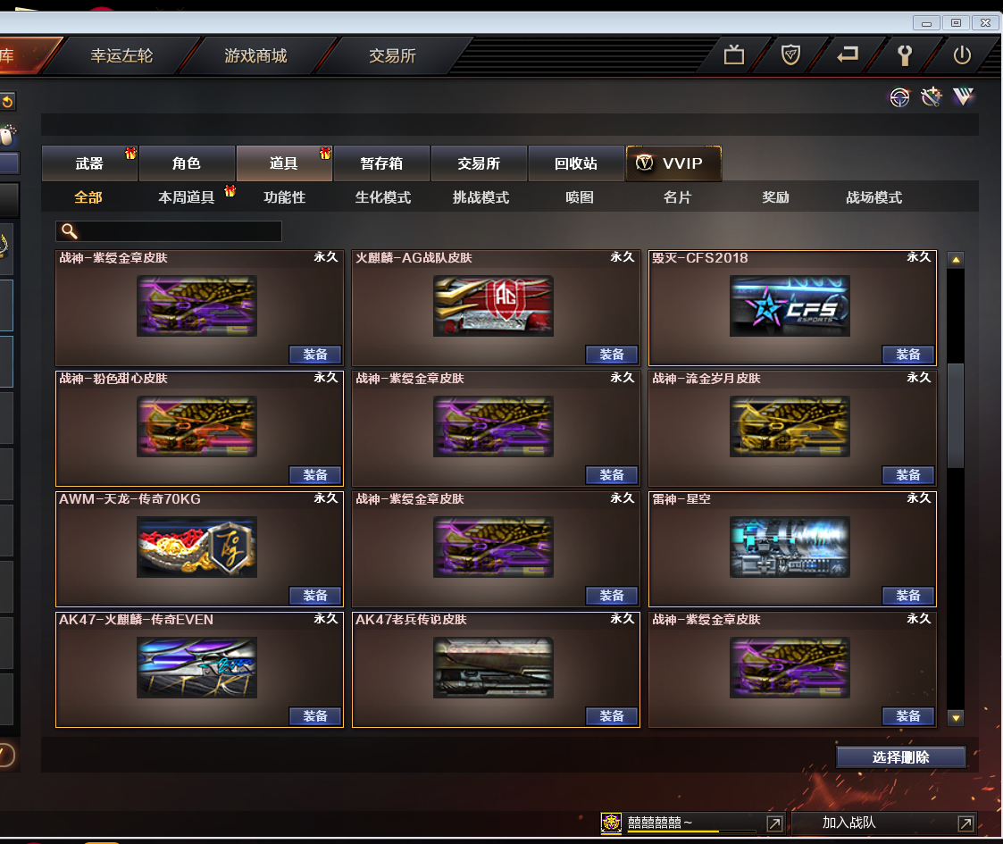 皮肤号|堕天神套装|黑骑士音效卡|CF网剧武器套装|EVEN皮肤地狱火荣耀星空耀金70KG等全皮肤|生化爆破全装号 东部战区合区大区(安徽一区、福建一区、上海一区、上海二区、浙江一区、浙江二区、江苏一区、江苏二区、教育大区、移动专区)登录的时候选择上海一区。 【SHA39】:嘻嘻嘻嘻 【角 色】:cfvip3、元首等级、王者复仇、救世主X、潜龙队X、新猎狐者、影武者X、雷霆、复仇者、幻影、娜塔莎、精英部队、瞳蓝魂、雷豹、王力宏、铁骑、救世复仇、救世主、邓紫棋、兰、夜玫瑰、双龙戒指、烟雾保护头盔,闪光护目镜、双龙戒指、双蛇戒指 【主 武】:黑武士CF网剧冠军武器套装、王者之幻(已觉醒)、王者之翼、炫金黑龙、炫金骑士、火麒麟灵狐、炼狱悦蓝、火麒麟(传奇EVEN皮肤)、黑龙X2(暗月、能量核心)、雷神X3(白鲨CFPLS14冠军皮肤、荣耀之魄、星空皮肤)、黑骑士(黑骑士音效卡、地狱火皮肤)、天启X3、超新星、机械迷城、黑鲨、玫瑰精灵X2、烈火X5、AK47-猩红传说X5(老兵传说皮肤)、AK47-B-战士、AK47-B-战神(粉色甜心皮肤、流金岁月皮肤、紫媛金章皮肤)、天龙(传奇70KG皮肤)、毁灭X2(CFS2018皮肤)、裁决、Barrett暗月传说、加特林炼狱X2、烈龙X2、AA12雷霆、天蝎座、金牛座、白羊座、射手座、神罚、乱世、苍雷、斯泰尔恶棍、征服者、死亡之眼、巨龙咆哮3级、激光毁灭者3级、巴雷特零水下丽影 【副 武】:王者之灵、修罗、源天神、胜利之火、COP旗袍 【近 身】:麒麟刺堕天神、龙啸堕天神、屠龙X2、龙啸、断离、干将莫邪、金砖、伪装、无畏之矛、清刚、影之刃 【投 掷】:高爆手雷堕天神X3、烟雾弹堕天神X3、闪光弹堕天神X3、高爆手雷雷霆、烟雾弹雷霆、闪光弹雷霆、音乐手雷、凤舞云烟、凤凰之息 【道 具】:黑骑士音效卡、关羽玩偶、深渊红龙玩偶、审判者玩偶、14个背包、超级背包、AC(防弹头盔-防弹衣)、C4工具钳、手雷包、新彩色昵称蓝色、自定义喷涂、生化弹夹、疯狂宝贝、冲锋枪弹夹、步枪弹夹、手枪弹夹、挑战弹夹、散弹枪弹夹、狙击枪弹夹、机枪弹夹、极限战斗背包;