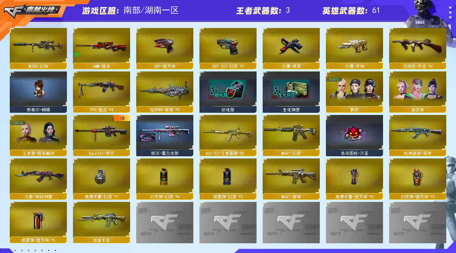 • 游戏区服:穿越火线 / 电信区 / 湖南一区