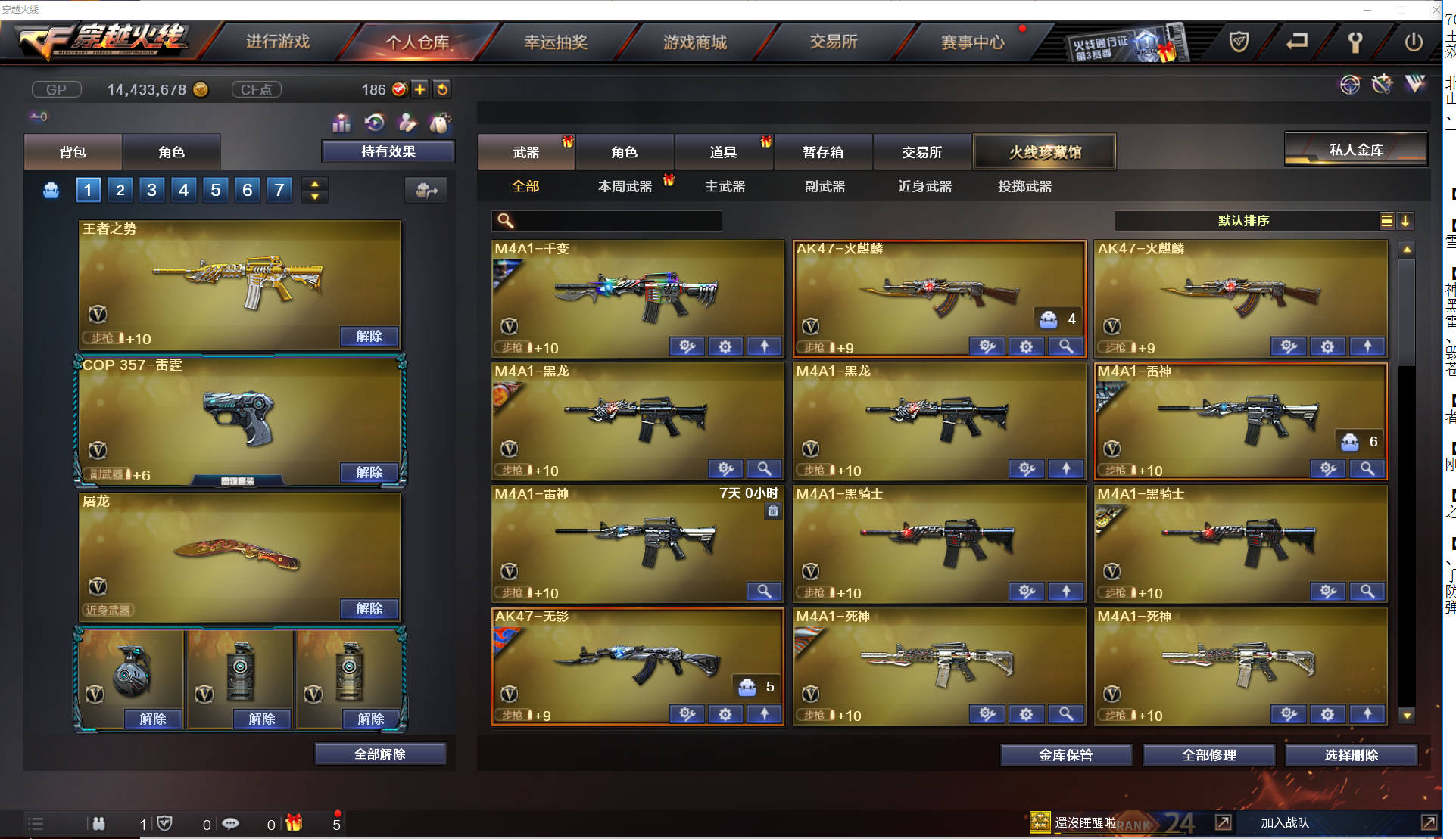 王者之势|炫金雷神|COP雷霆|70V木兰防闪|雷霆套装全套|毁灭音效卡|雷神星空皮肤|爆破全装号 北部战区合区大区(河北一区、辽宁一区、辽宁二区、辽宁三区、山东一区、山东二区、河南一区、河南二区、北京一区、北京二区、黑龙江一区、北方大区、北京三区、北京四区、吉林一区、山西一区)登录的时候选择河南一区。 【编号】:HN443 【角 色】:炫、零、樱、瞳、葵、狐影、风暴女、救世主-X、蜀雪、铁骑荣耀、影舞者-X、8周年戒指、双蛇戒指、双龙戒指 【主 武】:王者之势、王者之力、王者之怒、炫金武士、炫金雷神、炫金千变、千变、火麒麟X2、黑龙X2、雷神(星空)、无影、黑骑士(耀金)X2、死神X3、天启、超新星、机械迷城、黑鲨X2、雷霆、玫瑰精灵、猎神、天龙、毁灭(星空)、极光、雷霆巴雷特、烈龙、AA12雷霆、毁灭征服者、冰龙粉碎者、机甲撕裂者、激光毁灭者、圣炎切割者、深渊巨龙咆哮、神圣爆裂者、试炼破坏者、苍雷、金魔等各种活动武器 【副 武】:王者之灵、天神、COP雷霆X2、天神CF网剧冠军、阐释者、COP小青龙、胜利之火、大黄蜂 【近 身】:屠龙X2、龙啸X3、擎天X4、麒麟刺、尼泊尔雷霆、金刚伞、丛林匕首-枪王排位、猫猫手套、激光短刃、冰火魔拳 【投 掷】:雷霆套装X7、迷你生化手雷、深渊终结者手雷、胜利之光、高爆手雷-雷蛇、高爆手雷-SS 【道 具】:雷神音效卡、火麒麟音效卡、火麒麟玩偶、铁骑玩偶、暴躁猪猪玩偶、7个背包、AC(防弹衣+防弹头盔)、C4工具钳、手雷包、挑战弹夹、夺命之镰、变异宝贝、灵魂忍者、生化弹夹、防化服、机枪弹夹、冲锋枪弹夹、散弹枪弹夹、手枪弹夹、狙击枪弹夹、步枪弹夹、减少停顿包;