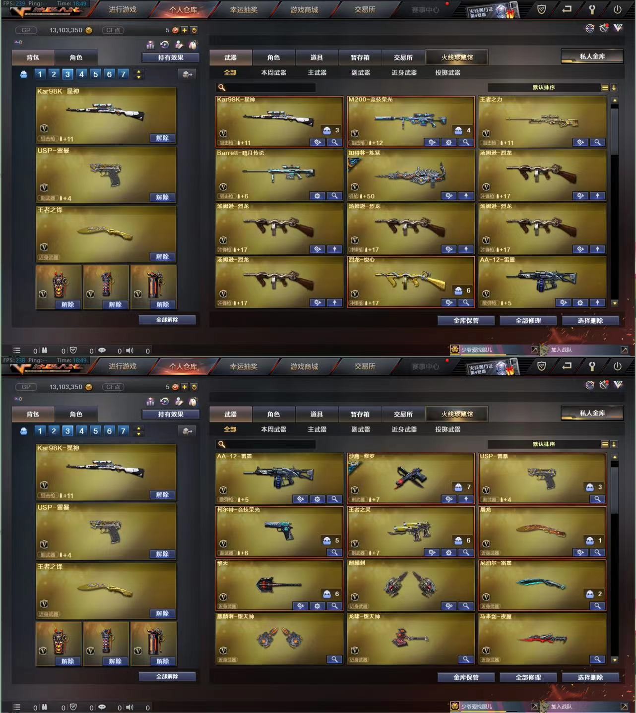 【科技大佬,请你高抬贵手,家里就靠这个号吃饭了,本人上有老,下有小,请你用一丝丝善意想想,给我留一条生路吧,感谢您到来过,谢谢!】 出租不易~~且玩且珍惜~~感谢!!!!!;USP-雷暴,电竞教官-云悠悠,QBZ03-金色蔷薇,M200-幻神,Kar98K-星神,