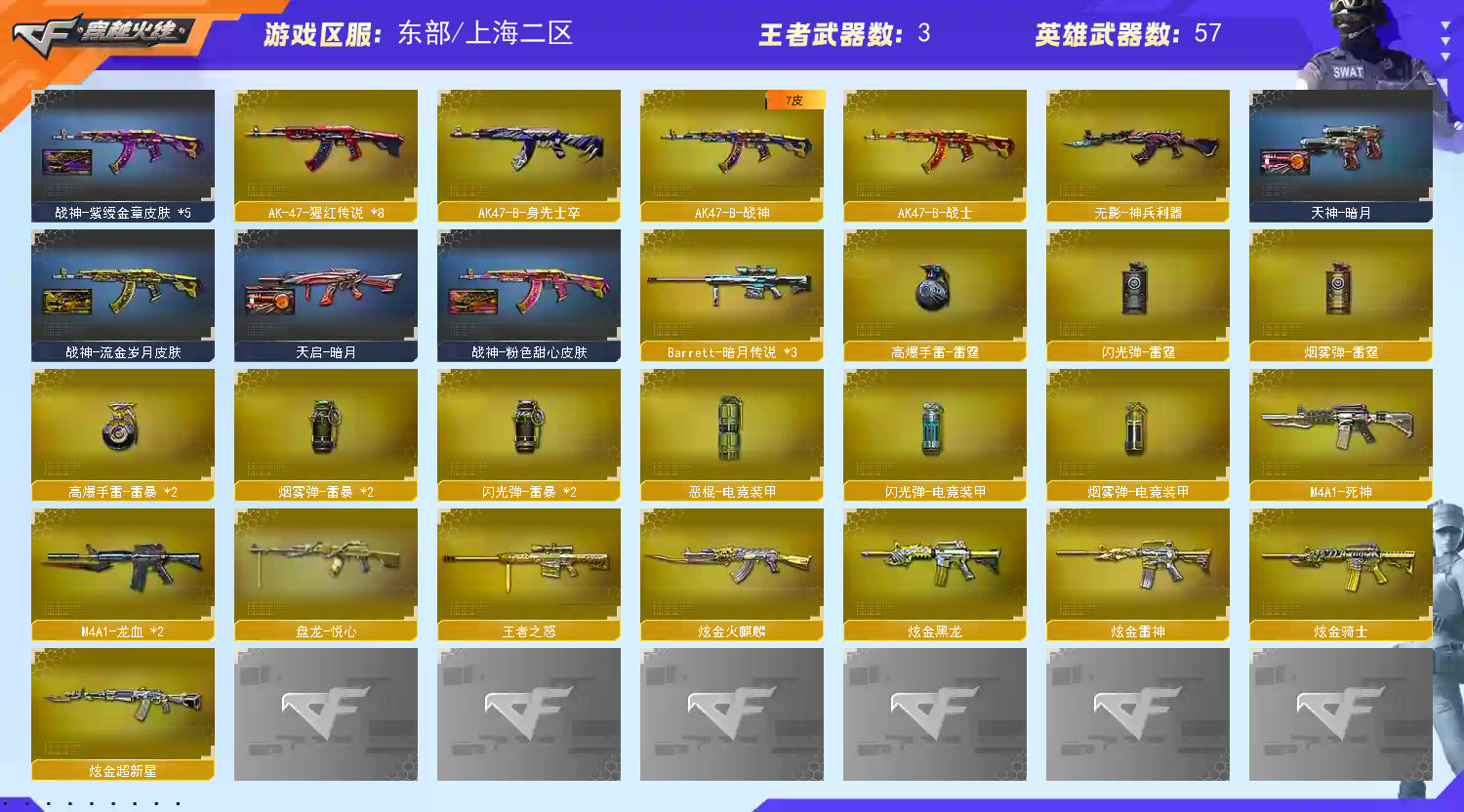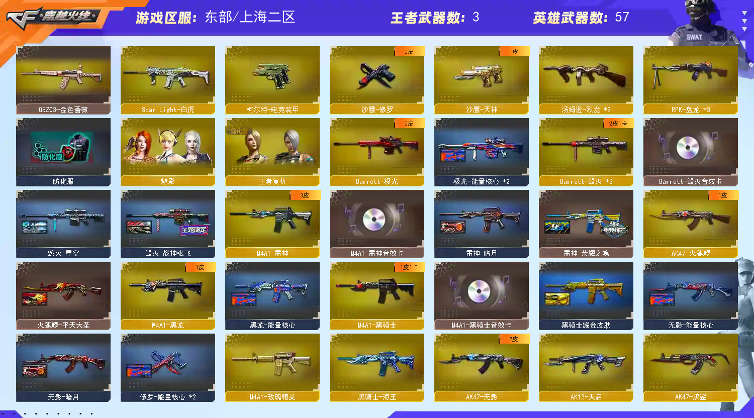 • 游戏区服:穿越火线 / 东部 / 上海二区