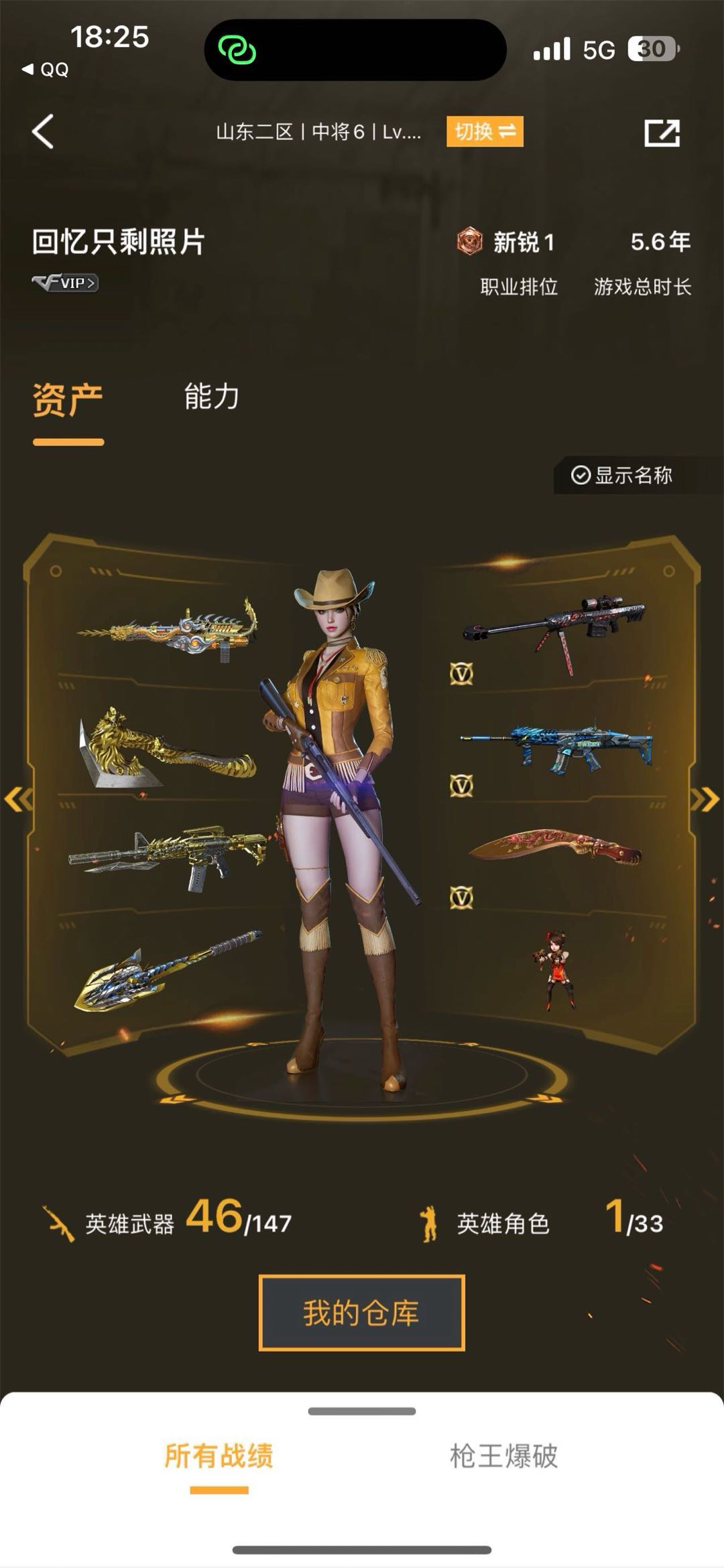 46v➕12王者 皮肤不少有稀有皮肤生化爆破双可戒指不少历史荣耀枪王;王者沙漠玫瑰,RPK-盘龙,QBZ03-金色蔷薇,