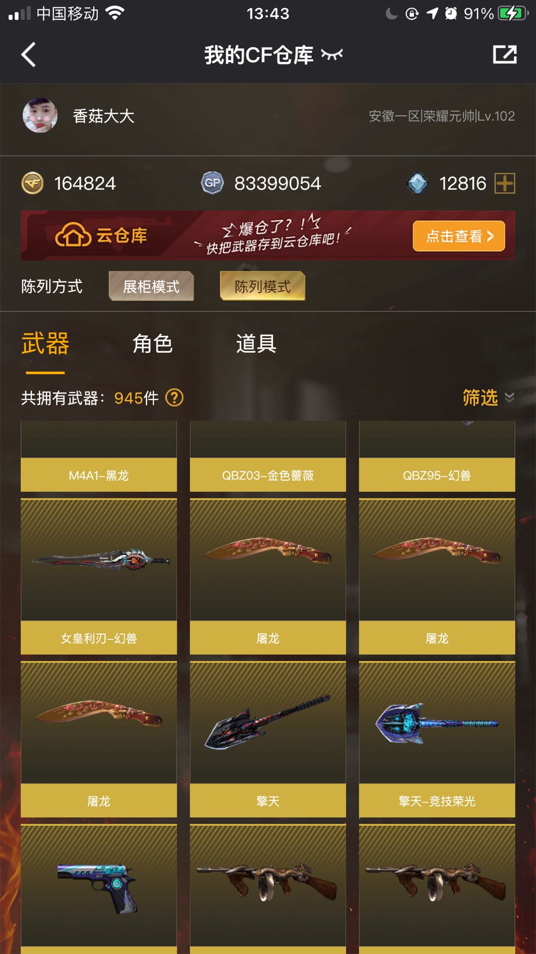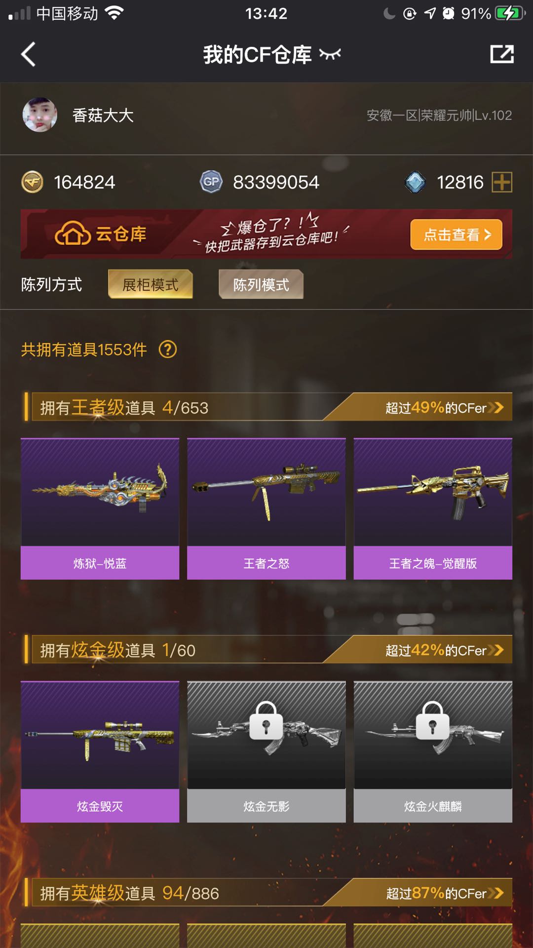 • 游戏区服:穿越火线 / 电信区 / 安徽一区