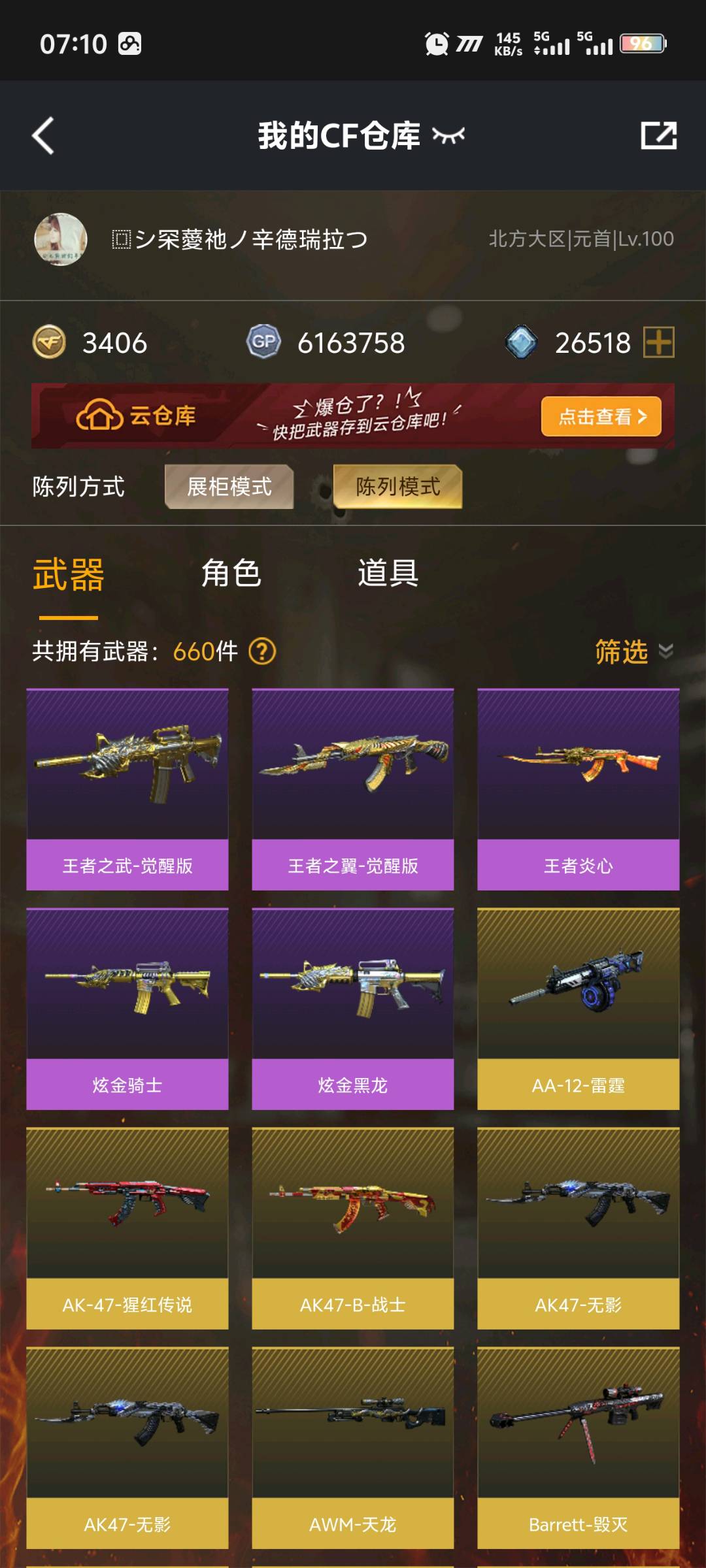 🔥100V🔥六烈+蝴蝶🔥炼狱+盘龙🔥租一次玩一天,到时不下线 绝对性价比账号,;RPK-盘龙,Scar Light-白虎,