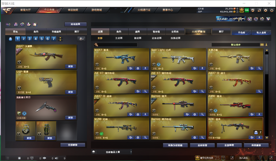 专家1M200-幻神白虎7雷暴套100V6烈盘7副双全装毁灭雷神音效卡很多皮肤;USP-雷暴,RPK-盘龙,M200-幻神,Scar Light-白虎,