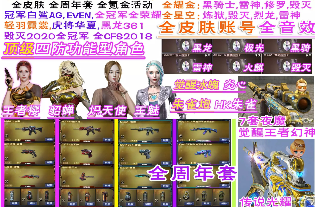 ⭐⭐⭐⭐⭐⭐⭐⭐⭐⭐⭐⭐⭐ ⭐ 国服神豪账号 欢迎您的体验 ⭐ ⭐⭐⭐⭐⭐⭐⭐⭐⭐⭐⭐⭐⭐ ❤️❤️❤️❤️❤️本号持续更新中 欢迎收藏此号❤️❤️❤️❤️❤️ ✨本号会时间紧跟官方更新最新皮肤和新枪,官方一旦有更新,本号会立刻跟进获得,让租客享受时间享受新枪新皮肤带来的快乐!(请收藏此号,后续方便找到)✨ ⚡【最近已更新】98K星神、王者春、征服者MAX、乱世MAX、雷神传奇N9皮肤、毁灭SVS16冠军皮肤、传说光耀、夜魔套装x7、王者幻神、AG炫彩背包、SV炫彩背包、BS炫彩背包、Q9炫彩背包、王者玲珑、凌霄角色、M4A1夜魔、破空枪刃夜魔x2、马来剑夜魔、网剧冠军套装x7、VEPR12金魔、王者炎心、王者CAT猫枪+黄金猫猫手套、Scar Light白虎M4A1青龙、黑龙音效卡、王胖子玩偶、M200幻神x2、王者瞳闭月羞花角色、HK417朱雀x2、火麒麟轻羽皮肤、新灵狐者、王者冰魄、王者之心、王者之力、王者之击、王者之决、王者之啸、零水下丽影角色、雷神冠军之魄皮肤、黑骑士冠军之势皮肤、龙啸冠军之啸皮肤、毁灭CF2020皮肤、火麒麟冠军之心皮肤、修罗CF2018皮肤、火麒麟绝迹、阐释者III、雷神白鲨CFPLS14冠军皮肤、火麒麟传奇EVEN皮肤、毁灭AGCFPLS15冠军皮肤、火麒麟CF STAR皮肤、天龙CF STAR皮肤、炫金天龙、火麒麟灵狐、王者之灵、炫金修罗、COP旗袍、M4A1雷神CFS 2019皮肤、雷神星空皮肤、M4A1万圣节2020、军用手斧战龙、沙鹰雷蛇、双枪沙鹰魅影、雪莉杨、SPAS12恶棍、闪光弹枪娘[巴雷特]、M200牡丹、樱花手雷、双生雷恶棍、双龙、红色诅咒娃娃手雷、激浪烟雾弹、手雷2017万圣节、P90迷彩、Anaconda炽焰核心、Anaconda雷电核心、M82A1封神、丛林匕首黑虎、FN 弩炮CFS2017纪念版、克洛诺斯的凝视、COP二次元、Colt1911大黄蜂、尼泊尔军刀9周年、雷神赛博朋克⚡ 【炫彩背包】AG炫彩背包、SV炫彩背包、BS炫彩背包、Q9炫彩背包 【账号类型】全能号、爆破号、生化号、挑战号、皮肤号、双全装、王者号、炫金号、赛事皮肤号、稀有皮肤、稀有武器、此号有超级对讲机,斯太尔蝴蝶+死亡之眼,生化无敌号!“王者魅影”角色、“王者零”角色、“空”角色、“王者葵貂蝉”角色、王者瞳闭月羞花角色 全服限量稀有武器:【王者CAT猫枪+黄金猫猫手套】 【挑战强化武器】VEPR12金魔、神圣爆裂者III、阐释者III、AK47冰龙粉碎者、巨龙咆哮III、M240B苍雷、斩神刀、乱世、迷你深渊冰龙 【土豪体验】6盘6烈6黑6步6副6狙6近身6手雷 【赛事稀有皮肤】雷神传奇N9皮肤、毁灭SVS16冠军皮肤、火麒麟轻羽皮肤、雷神冠军之魄皮肤、黑骑士冠军之势皮肤、龙啸冠军之啸皮肤、毁灭CF2020皮肤、火麒麟冠军之心皮肤、修罗CF2018皮肤、雷神白鲨CFPLS14冠军皮肤、M4A1雷神CFS 2019皮肤、火麒麟传奇EVEN皮肤 CF2018皮肤 华夏之心皮肤 AG战队皮肤 火麒麟CF STAR皮肤、雷神荣耀之魄皮肤x3 虎将皮肤、毁灭AGCFPLS15冠军皮肤 毁灭CF2018皮肤 毁灭荣耀之怒皮肤 毁灭星空皮肤 耀金皮肤、天龙传奇70KG皮肤 传奇白鲨皮肤 天龙CF STAR皮肤 天龙能量核心皮肤、屠龙荣耀之锋皮肤、雷神耀金皮肤、黑骑士耀金皮肤、炼狱星空皮肤、战神流金岁月皮肤 战神粉色甜心皮肤 战神紫绶金章皮肤、雷神星空皮肤、修罗能量核心皮肤 修罗CF STAR、无影霓裳皮肤、无影耀金皮肤 【音效卡】黑龙音效卡、雷神音效卡x2、黑骑士音效卡、火麒麟音效卡x5、毁灭音效卡x2 【王者武器】王者之魄x6、王者之幻、王者之翼、王者之鲨、王者之势、王者之怒x7、王者之影、王者之光、王者之锋x2、王者之灵、王者之戮、王者之武、王者之心、王者之击、王者之决、王者之啸、王者之力 【炫金武器】炫金雷神x2、炫金无影、炫金火麒麟、炫金武士、炫金千变,炫金骑士,炫金毁灭、炫金黑龙、炫金天龙x2、炫金修罗 【超稀有武器】传说光耀、王者幻神、王者炎心、王者冰魄、王者CAT猫枪、黄金猫猫手套、M200幻神、超新星悦享x2、炼狱悦蓝、斯太尔蝴蝶 【套装武器】夜魔套装x7、雷霆套装x8、堕天神套装x7、网剧冠军套装x7 【玩具武器】王者CAT猫枪、黄金猫猫手套、斯太尔蝴蝶、CAT刀锋、CAT、金色小号、M4A1雷神精英刀锋、火麒麟绝迹、火麒麟灵狐x2、巴雷特零水下丽影、COP旗袍、迷你深渊冰龙、M37葵 【玩偶】王胖子玩偶、羊驼玩偶、孙悟空玩偶、小兔姬玩偶、铁骑玩偶、兔子泰迪娃娃、炫羊玩偶、白狼玩偶、妖姬玩偶、夏日水手玩偶、敖丙玩偶、黄金幸运猪玩偶、猫头鹰玩偶、王者刀锋玩偶、深渊红龙玩偶、关羽玩偶、兔子泰迪娃娃玩偶、灵狐潜伏者玩偶、悦动玩偶、审判者玩偶、小红玩偶、终结者玩偶、夏日DJ玩偶、浣熊玩偶、中国娃玩偶、哪吒玩偶、泰迪娃娃玩偶、异形终结者玩偶、火麒麟玩偶、金色幸运鼠玩偶 【主武器】传说光耀、王者幻神、M4A1夜魔、王者炎心、王者CAT猫枪、Scar Light白虎、VEPR12金魔、M200幻神x2、HK417朱雀x2、M4A1青龙、王者冰魄、M4A1千变x8、AK47火麒麟x6、M4A1黑龙x8、M4A1雷神x13、M4A1黑骑士x12、AK47无影x3、M4A1死神、AK47黑武士x2、AK12天启x6、AN94超新星、AK47机械迷城x12、M4A1龙血x7、AK47黑鲨x13、M4A1雷霆、M4A1堕天神、QBZ03金色蔷薇x6、M4A1猎神、9A91烈火x9、王者之翼、王者之魄、王者之幻、AK47猩红传说xN、AK47B战士、AK47B战神、AWM天龙x4、Barrett毁灭x12、Barrett极光x2、AWM裁决x9、Barrett雷