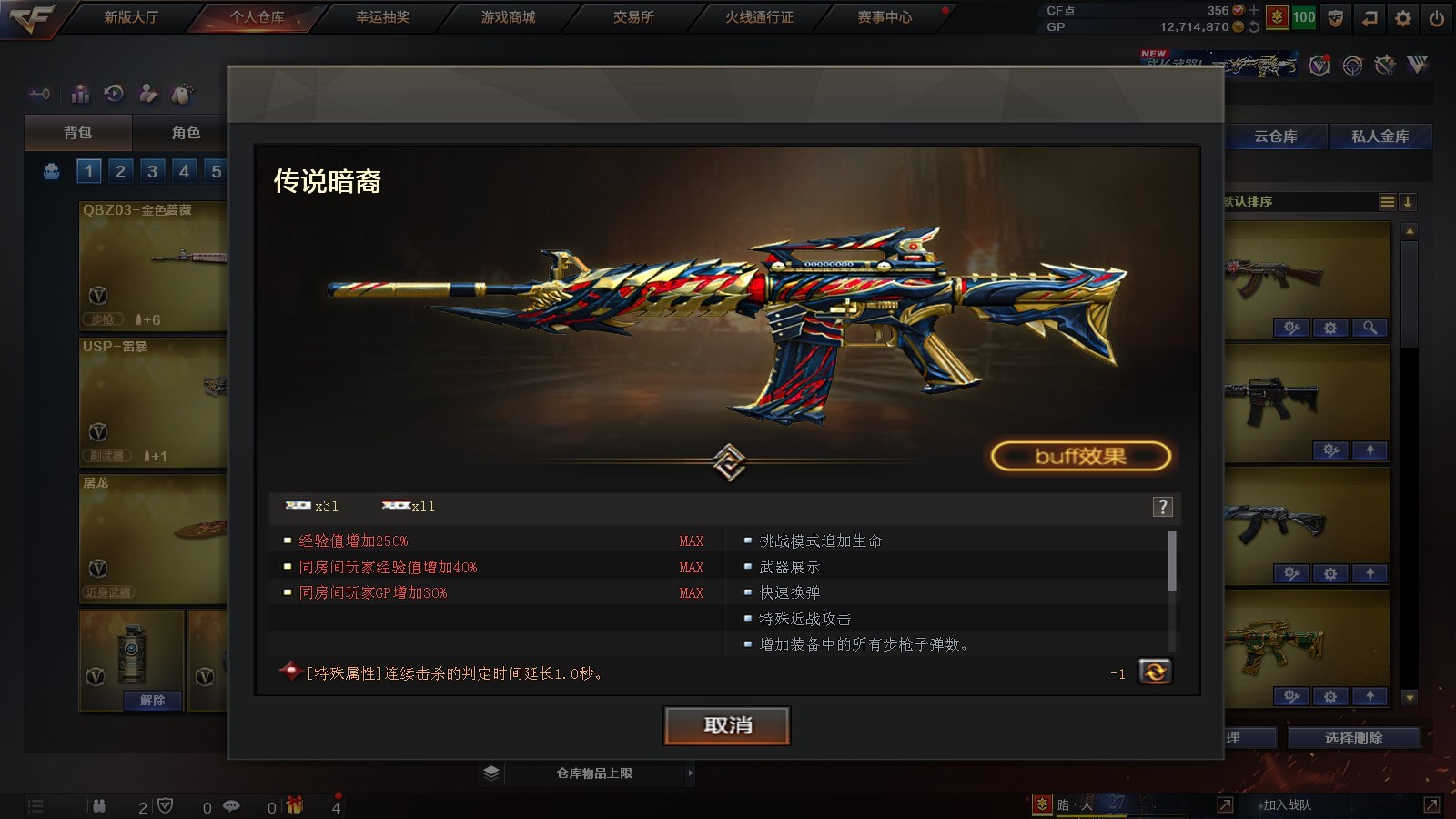 传说暗裔+USP雷暴丨QBZ蔷薇白虎朱雀丨雷暴套丨生化6盘6烈+炼狱蝴蝶