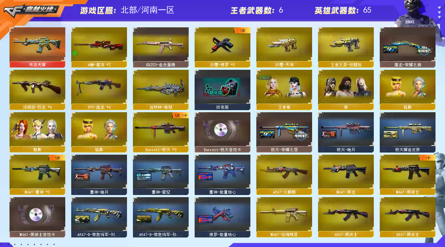 首页 > 租号大厅 > 穿越火线 > 网通区/河南一区 > 四防王者春丨QBZ蔷薇+毁灭三件套+爆破基础V丨生化6盘6烈+炼狱